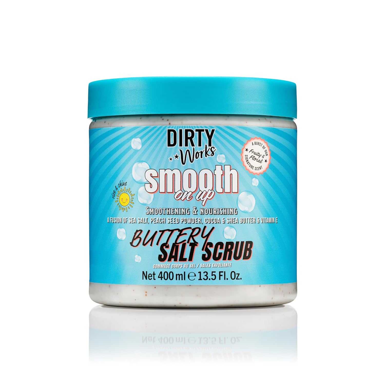 DIRTY WORKS SEA SALT SCRUB: Fancy buttery smooth skin The Dirty Works Salt Scrub 400ml helps you buff away dead skin cells and dry skin with our natural dead sea salt exfoliant, suitable for total body pampering and gently scented with our signature fragrance. Vegetarian friendly!