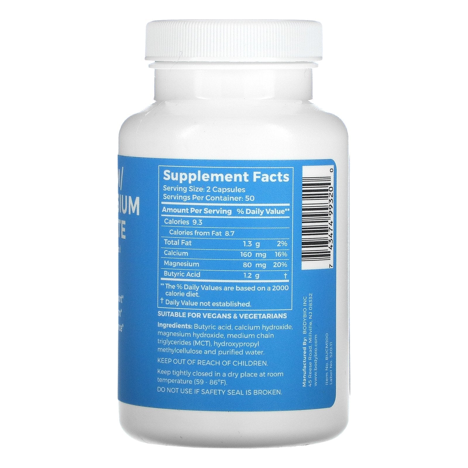 Bodybio, Calcium/ Magnesium Butyrate