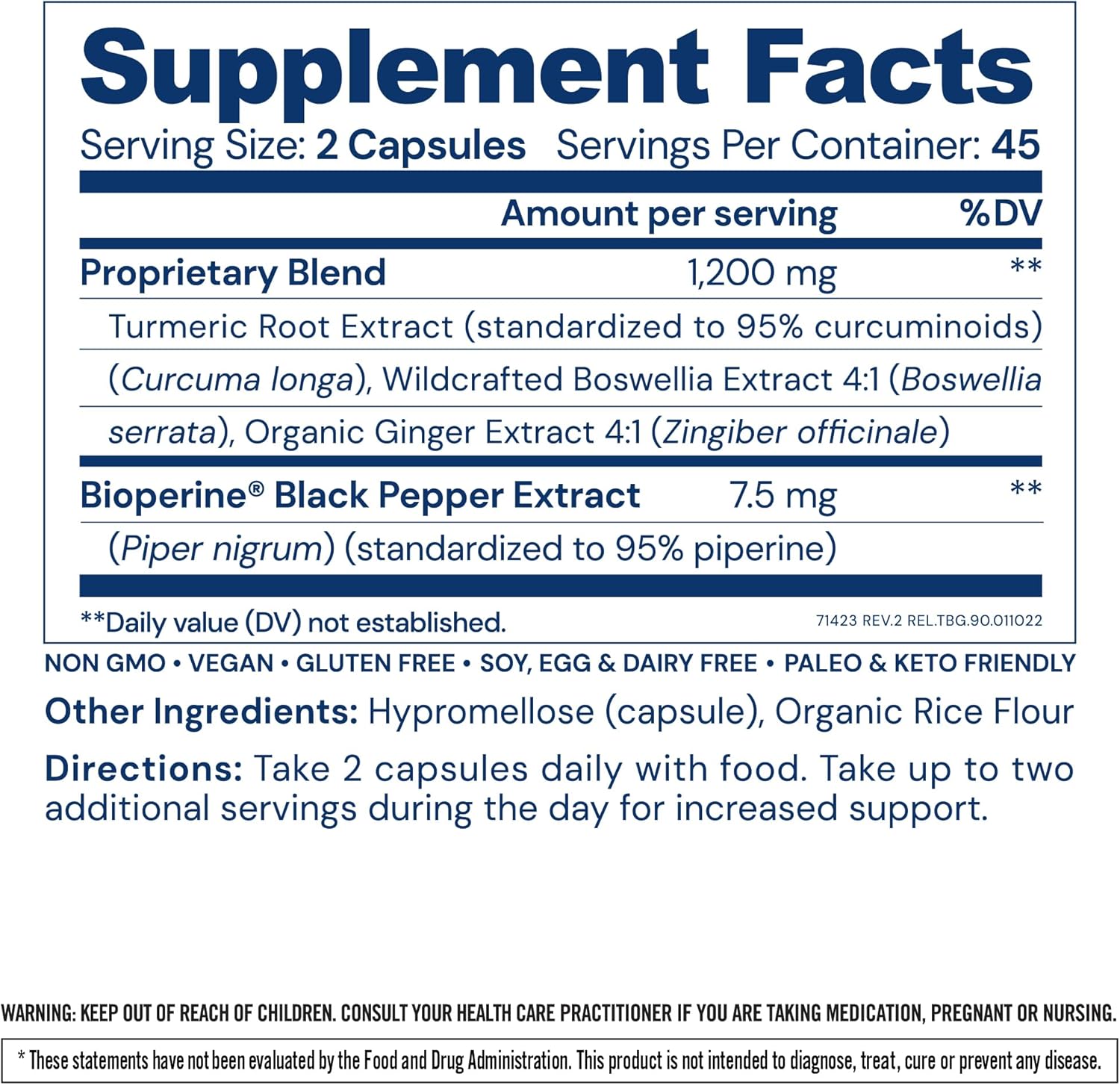 ALL NATURAL. Supplement for joint discomfort contains natural Turmeric, Boswellia, and Organic Ginger, to deliver safe joint relief