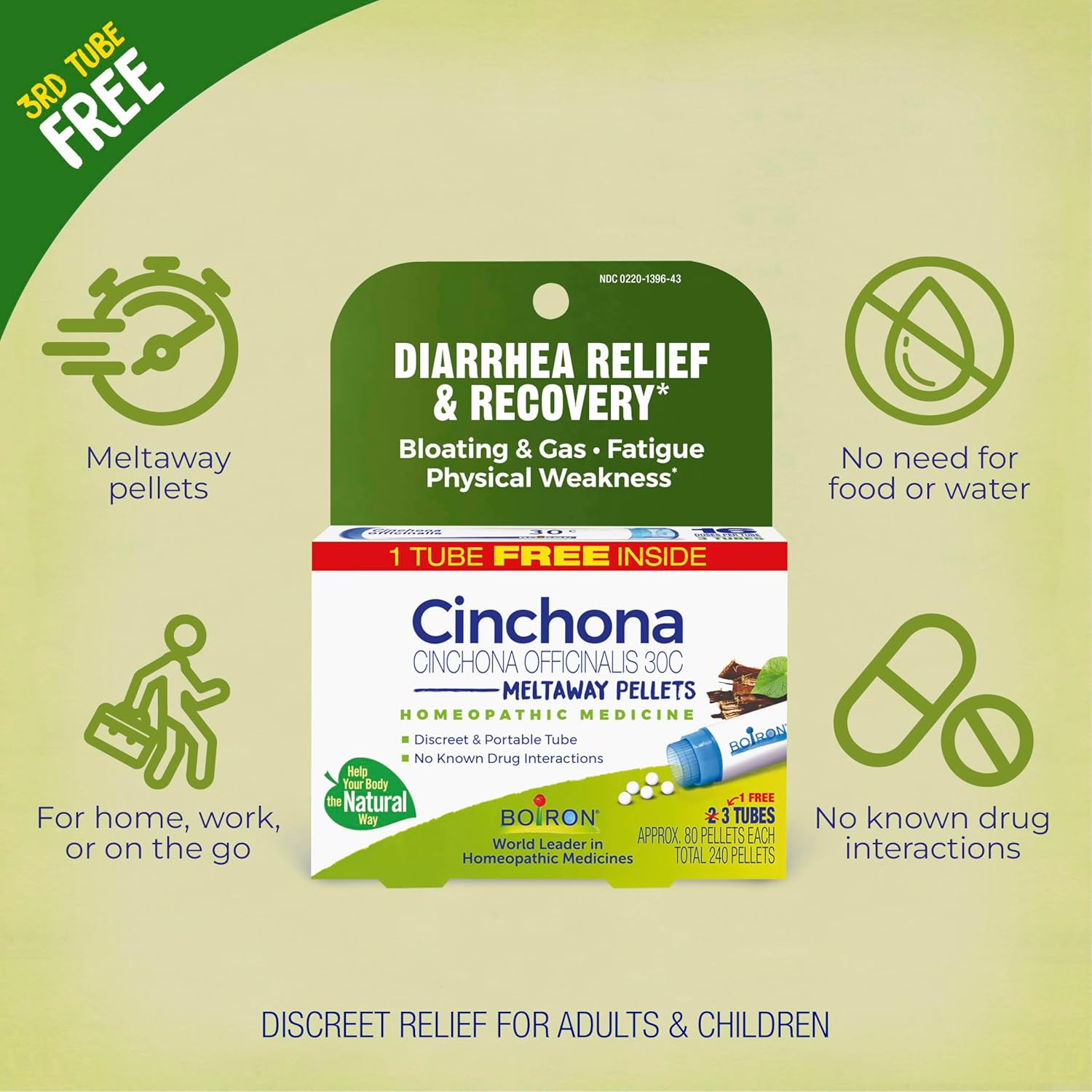Boiron Cinchona 30C Homeopathic Medicine For Relief From Diarrhea, Bloating, Gas, Fatigue, And Physical Weakness - 3 Count (240 Pellets)