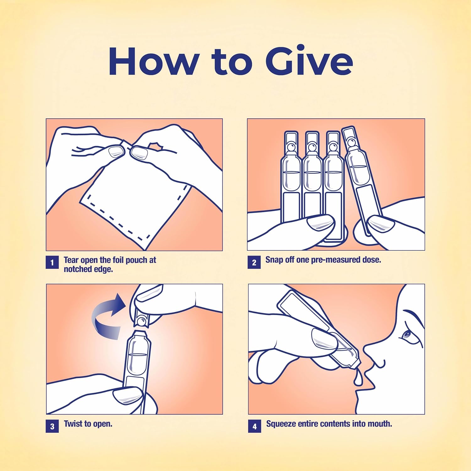 JUST TWIST, SQUEEZE & GO: Individual pre-measured liquid doses are mess-free and simple to use. Simply twist off the cap and squeeze into mouth. Thereās no need to mix, measure, or know your childās weight