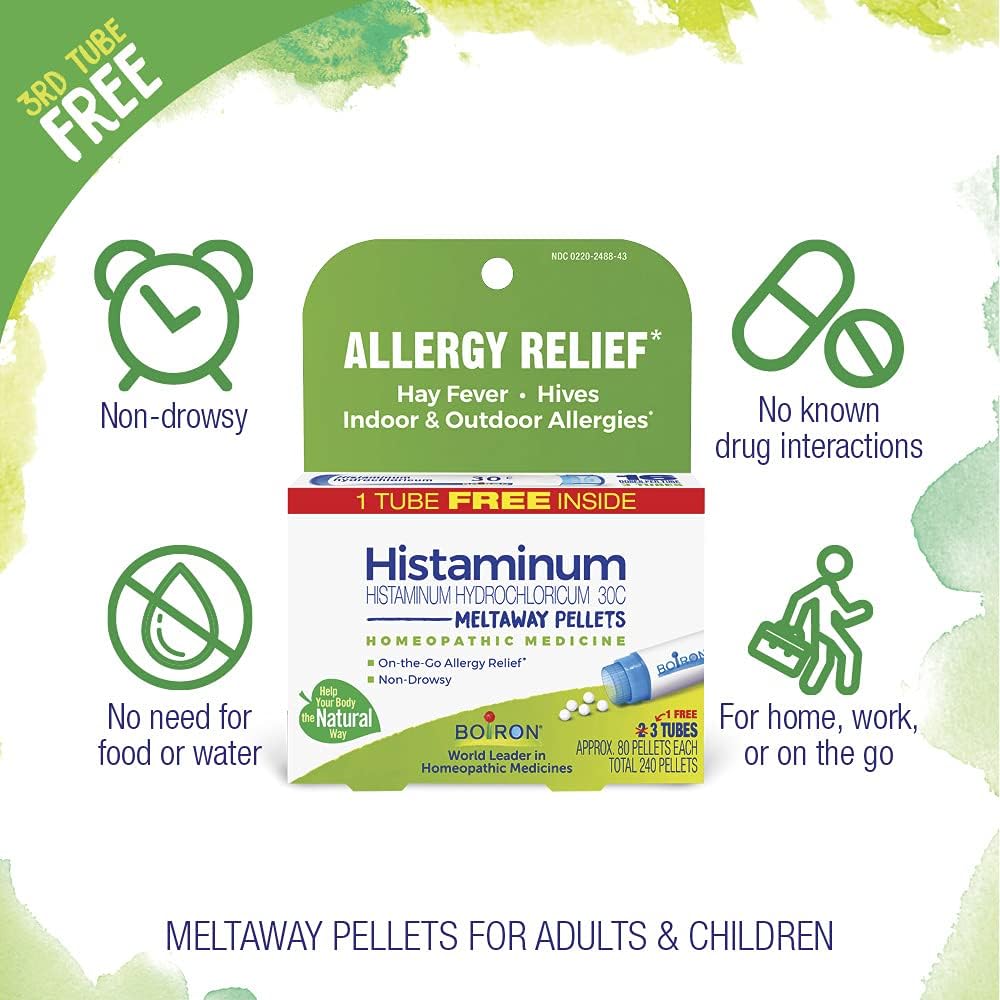 Boiron Histaminum Hydrochloricum 30C Homeopathic Medicine For Indoor Or Outdoor Allergy Relief, Hay Fever, And Hives - 3 Count (240 Pellets)
