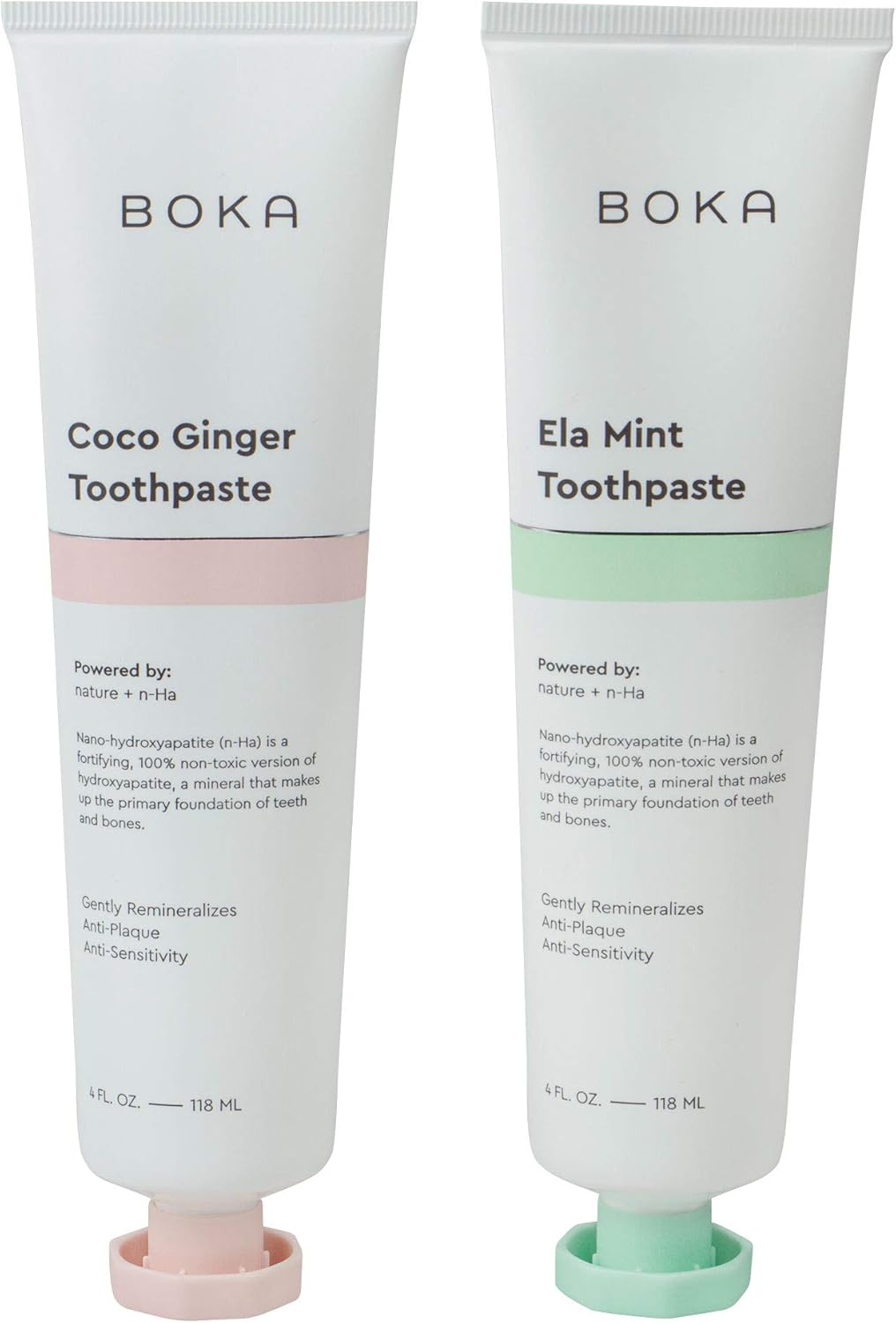Boka Fluoride Free Toothpaste - Nano Hydroxyapatite, Remineralizing, Sensitive Teeth, Whitening - Dentist Recommended For Adult, Kids - Ela Mint And Coco Ginger Natural Flavor - 4Oz (Pack Of 2)