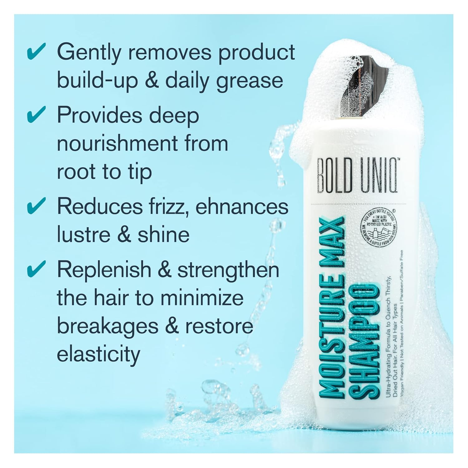 Bold Uniq Moisturizing & Hydrating Shampoo & Conditioner Bundle. For Dry Hair & Scalp. Adds Moisture & Shine. Detangles & Repairs Damaged, Colored, Curly & Frizzy Hair. Paraben & Sulfate Free