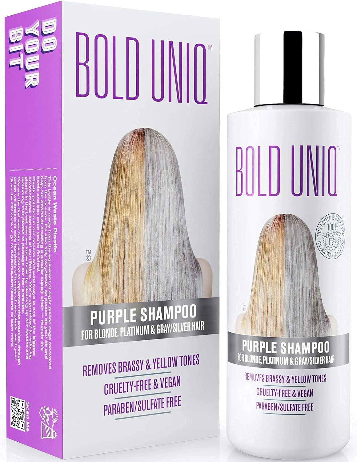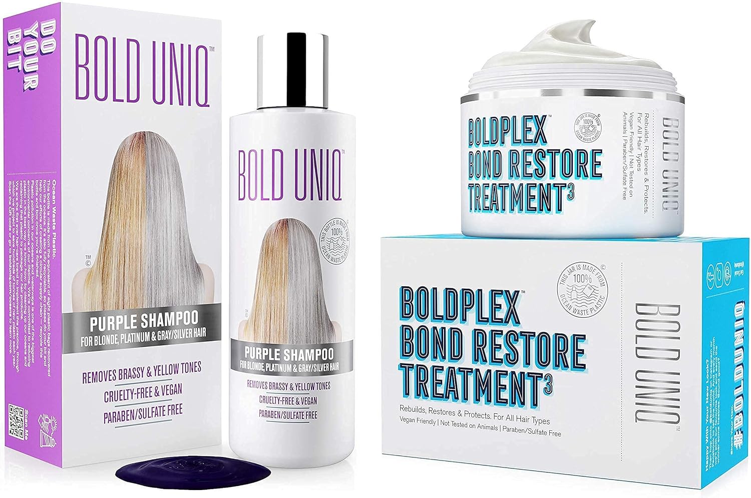 Bold Uniq Purple Shampoo & Boldplex 3 Bond Repair Hair Treatment Bundle - Revitalizes Bleached, Damaged Hair. Eliminates Brassy Yellow Tones. Paraben & Sulfate-Free, Vegan & Cruelty-Free