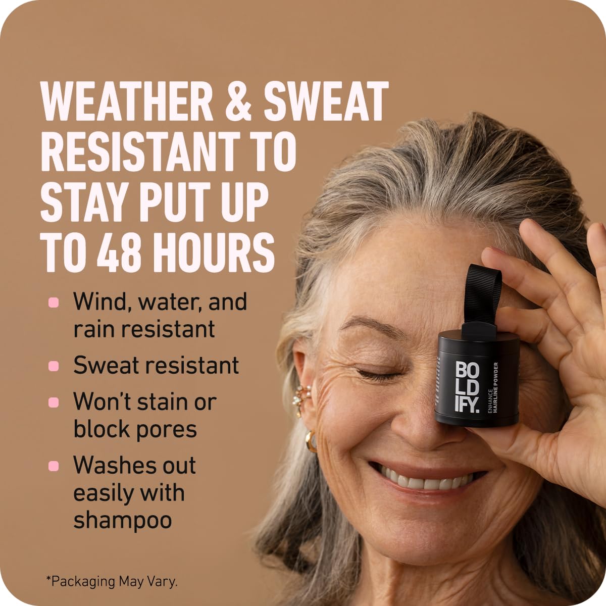 About this item Clump-proof fibers for a real hair effect & undetectable finish: Boldify Hair Thickening Fibers are the premium solution to instantly disguise thinning and patchiness at the crown and along the partline. Our advanced hair powder fibers boast follicle-mimicking molecules that allow seamless blending and a natural, real-hair finish. For best results, at least some hair must be present. Looking for more coverage for areas with less hair Boldify Hairline Powder may be a better fit! The Right Shade, Guaranteed: When selecting one of the 14 available shades, always seek to match your hair at the roots; matching the midlengths/ends is the number one color match issue we see. If you think you're between 2 shades, always go with the darker option -- it'll look the most natural! Fibers that are too light will always create an undesireable finish. Need help Pick the wrong color Don't contact Amazon! Click "Contact Seller" so that our dedicated Customer Care Team can assist! Superior products made better: Our natural, Cruelty-Free Hair Building Fibers are made under strict quality standards in our ISO 9001 facility. We responsibly and sustainably source only the finest ingredients to create a superior - yet affordable - product that works far better than other overpriced keratin fibers! Hassle Free Satisfaction Guarantee: We’re so sure that you’ll regain your confidence and adore your results that we back each bottle with our comprehensive risk-free guarantee. Buy and try a bottle of Boldify Fibers and love it - or we’ll refund the purchase price upon request. Period. No hassle, no questions asked, no return required! Easy to apply, mishap-free fibers that outlast the day: Wash, fully dry, and style hair as usual. Shake fibers over desired areas and pat gently to set in place for a noticeably thicker look, instant scalp coverage, and a fuller finish that lasts all day. Set with the spray of your choice to maximize weather and sweat resistance; easily and cleanly remove in a single shampoo. › See more product details,Clump-proof fibers for a real hair effect & undetectable finish: Boldify Hair Thickening Fibers are the premium solution to instantly disguise thinning and patchiness at the crown and along the partline. Our advanced hair powder fibers boast follicle-mimicking molecules that allow seamless blending and a natural, real-hair finish. For best results, at least some hair must be present. Looking for more coverage for areas with less hair Boldify Hairline Powder may be a better fit!,The Right Shade, Guaranteed: When selecting one of the 14 available shades, always seek to match your hair at the roots; matching the midlengths/ends is the number one color match issue we see. If you think you're between 2 shades, always go with the darker option -- it'll look the most natural! Fibers that are too light will always create an undesireable finish. Need help Pick the wrong color Don't contact Amazon! Click "Contact Seller" so that our dedicated Customer Care Team can assist!,Superior products made better: Our natural, Cruelty-Free Hair Building Fibers are made under strict quality standards in our ISO 9001 facility. We responsibly and sustainably source only the finest ingredients to create a superior - yet affordable - product that works far better than other overpriced keratin fibers!,Hassle Free Satisfaction Guarantee: We’re so sure that you’ll regain your confidence and adore your results that we back each bottle with our comprehensive risk-free guarantee. Buy and try a bottle of Boldify Fibers and love it - or we’ll refund the purchase price upon request. Period. No hassle, no questions asked, no return required!,Easy to apply, mishap-free fibers that outlast the day: Wash, fully dry, and style hair as usual. Shake fibers over desired areas and pat gently to set in place for a noticeably thicker look, instant scalp coverage, and a fuller finish that lasts all day. Set with the spray of your choice to maximize weather and sweat resistance; easily and cleanly remove in a single shampoo