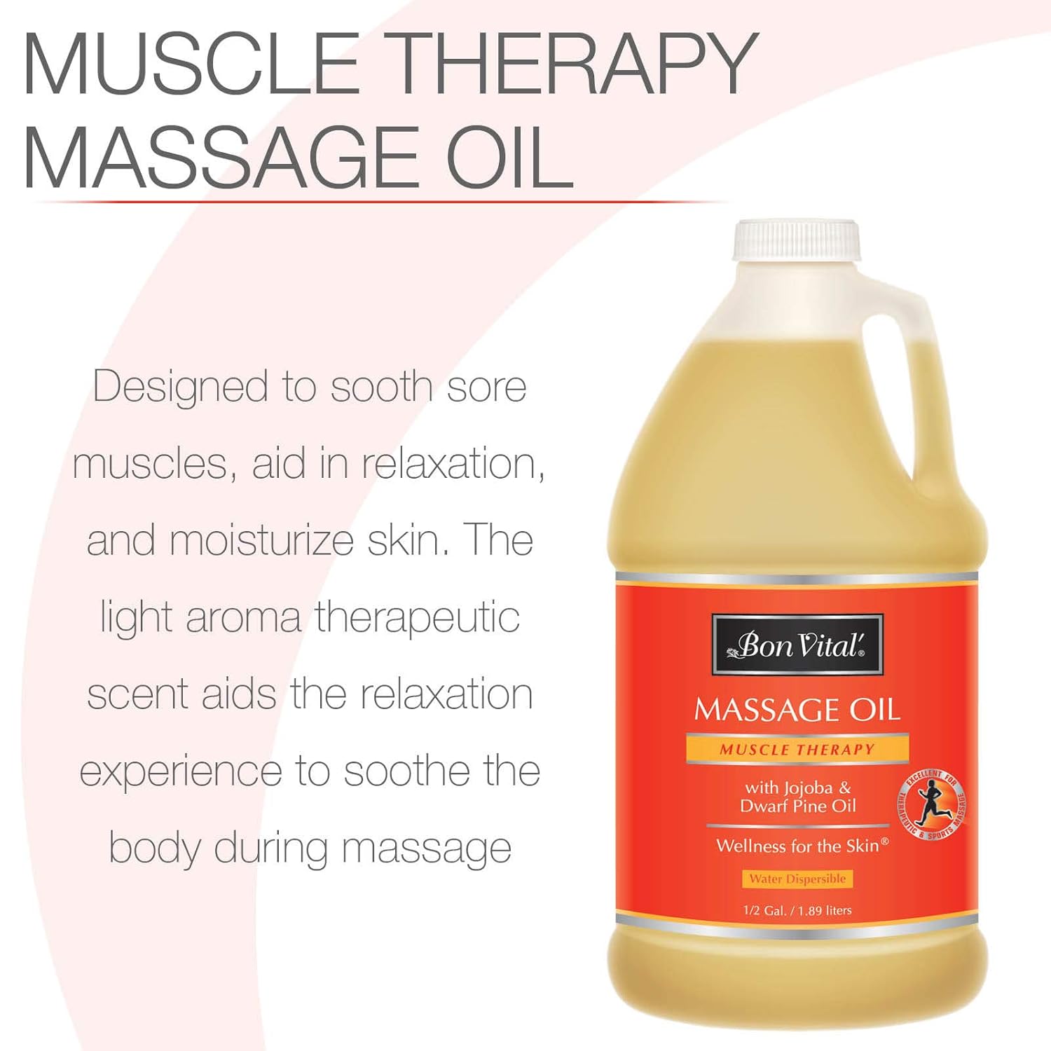 Bon Vital' Muscle Therapy Massage Oil Made With Dwarf Pine Oil & Essential Oils For A Soothing Massage & Soreness Relief, Can Be Combined With The Iastm And Graston Techniques, 1/2 Gallon Bottle
