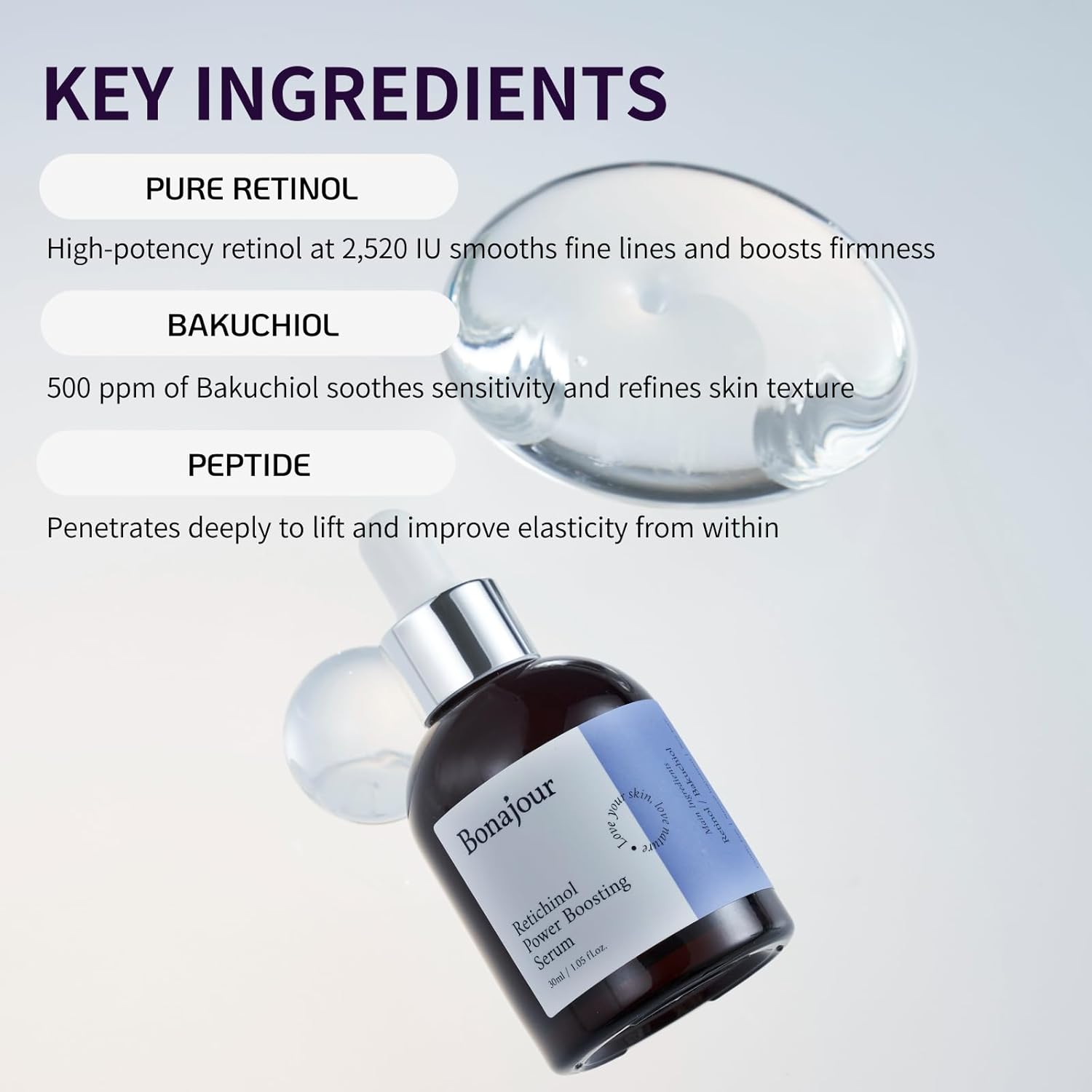 [Bonajour] Retichinol Power Boosting Serum With Retinol And Bakuchiol - Anti-Aging, Wrinkle Care, Enlarged Pores, Hyperpigmentation Improvement 1.05 Fl.Oz