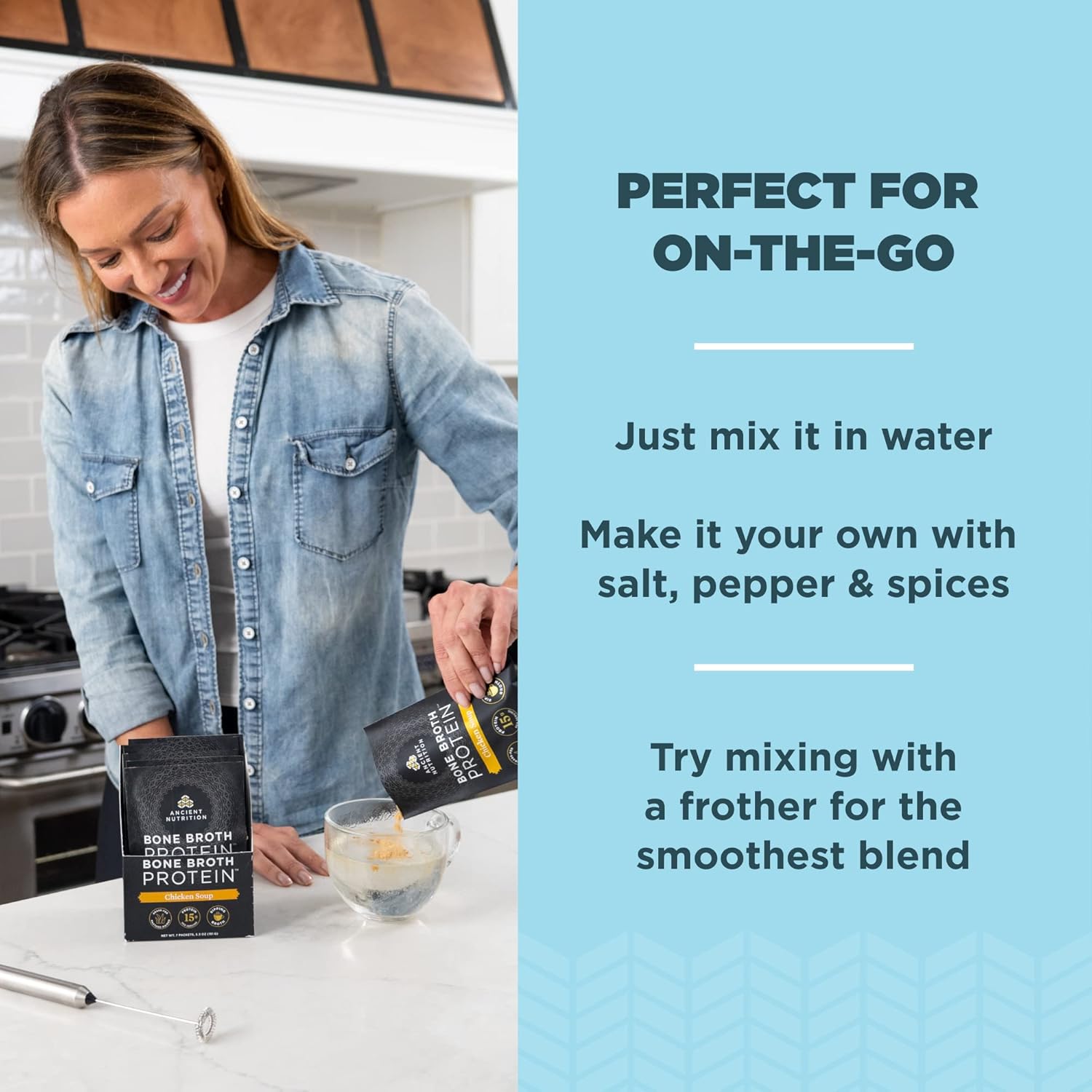 Bone Broth Protein Powder By Ancient Nutrition, Chicken Soup Packets, Grass-Fed Chicken And Beef Bone Broth Powder, 15G Protein Per Serving, Supports A Healthy Gut, 7 Count