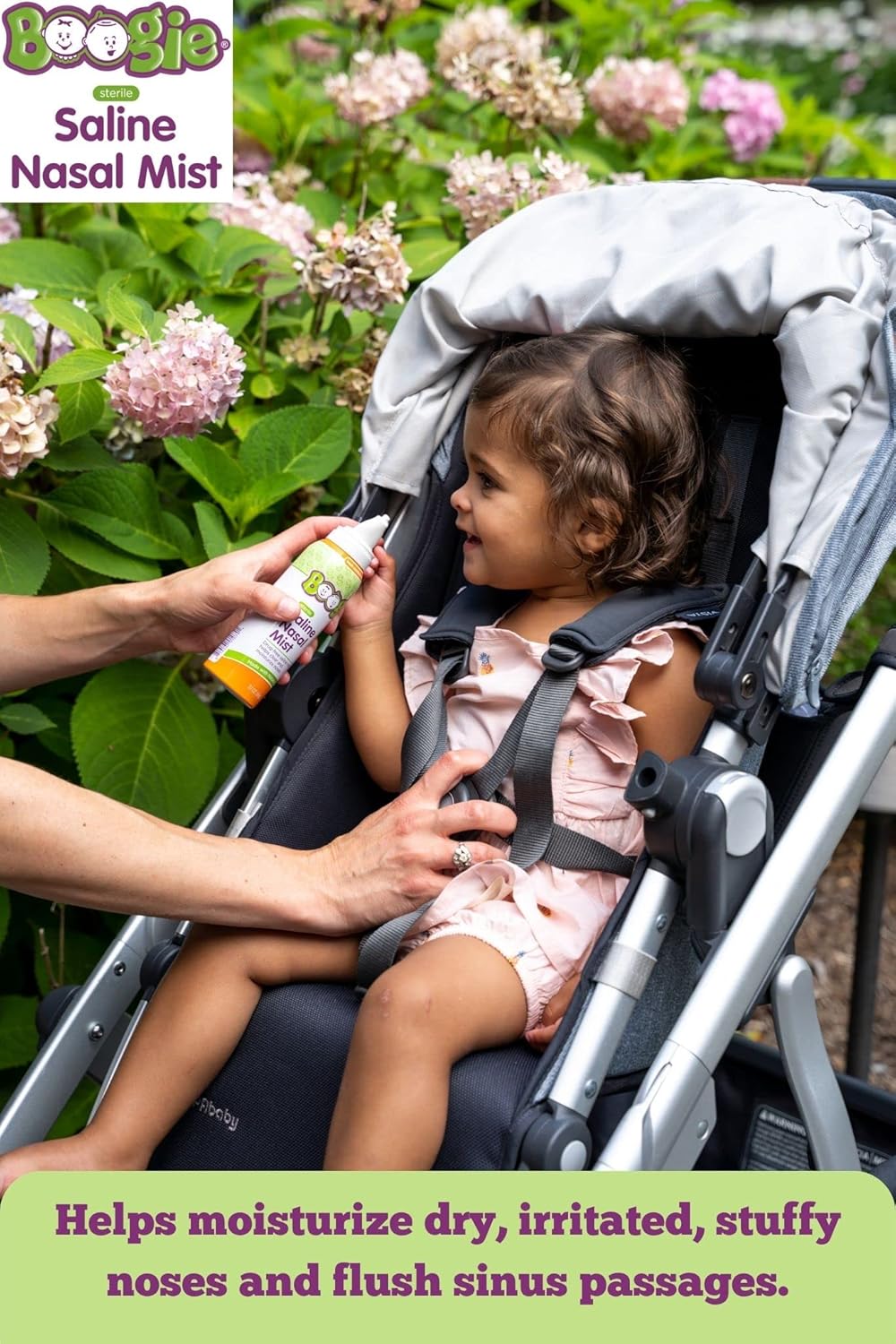 About this item HELPS CLEAR AND MOISTURIZE: Boogie Mist Saline Nose Mist helps moisturize dry, irritated, stuffy noses and flush dust, dirt, and pollen from nasal and sinus passages. NATURAL SALINE FORMULA: Non-medicated sterile saline mist is natural and works quickly inside the nasal cavity to ease congestion. GENTLE: Gentle enough to use as often as needed – everyday or when cold, flu or allergy symptoms are at their worst. CONVENIENT & EASY-TO-USE: Gentle, kid-friendly saline mist is an easy-to-use alternative to saline spray or drops. UNSCENTED: With no added fragrances. › See more product details,HELPS CLEAR AND MOISTURIZE: Boogie Mist Saline Nose Mist helps moisturize dry, irritated, stuffy noses and flush dust, dirt, and pollen from nasal and sinus passages,NATURAL SALINE FORMULA: Non-medicated sterile saline mist is natural and works quickly inside the nasal cavity to ease congestion,GENTLE: Gentle enough to use as often as needed – everyday or when cold, flu or allergy symptoms are at their worst,CONVENIENT & EASY-TO-USE: Gentle, kid-friendly saline mist is an easy-to-use alternative to saline spray or drops,UNSCENTED: With no added fragrances