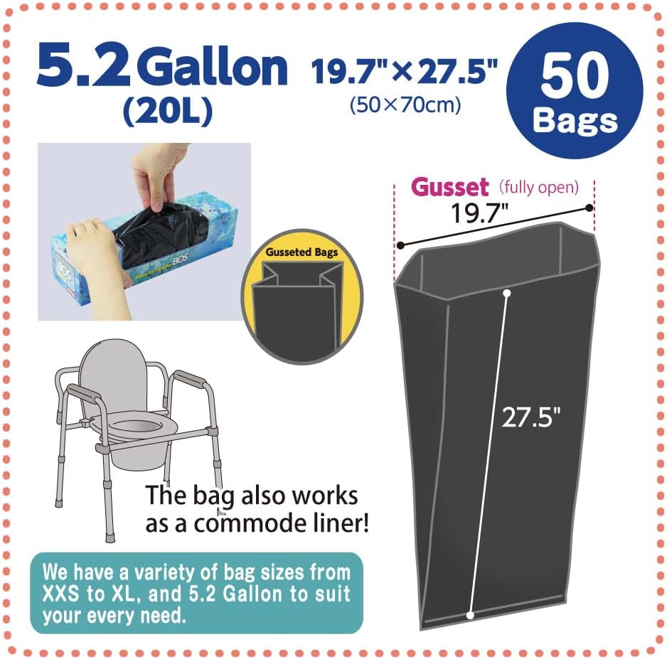 Bos Amazing Odor Sealing Disposable Bags For Commode Liners, Adult Diapers Or Any Sanitary Product - Durable & Unscented (50 Bags) [5.2 Gallon/20L, Color: Black]