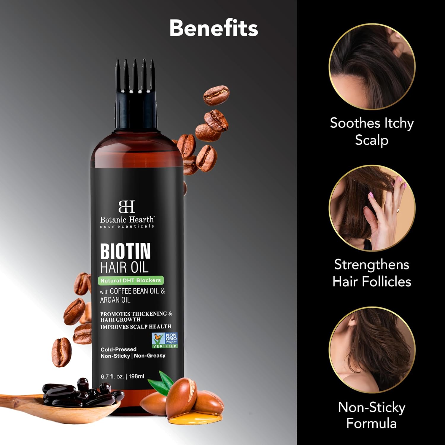 Botanic Hearth Biotin Hair Oil For Hair Growth Infused With Coffee Bean Oil & Argan Oil | Hair Strenghtening Treatment | Nourishing & Volumizing | Non GMO Verified | 6.7 fl oz