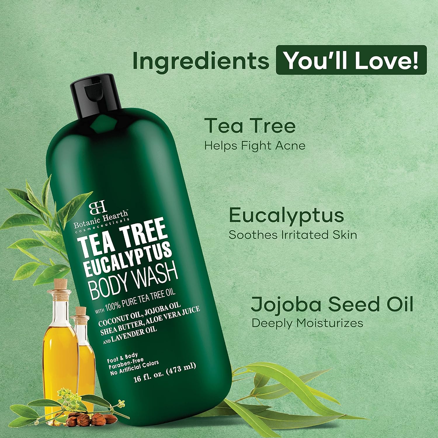 Botanic Hearth Eucalyptus Tea Tree Body Wash, Helps With Nails, Athletes Foot, Ringworms, Jock Itch, Acne, Eczema & Body Odor, Soothes Itching & Promotes Healthy Skin And Feet, 16 Fl Oz