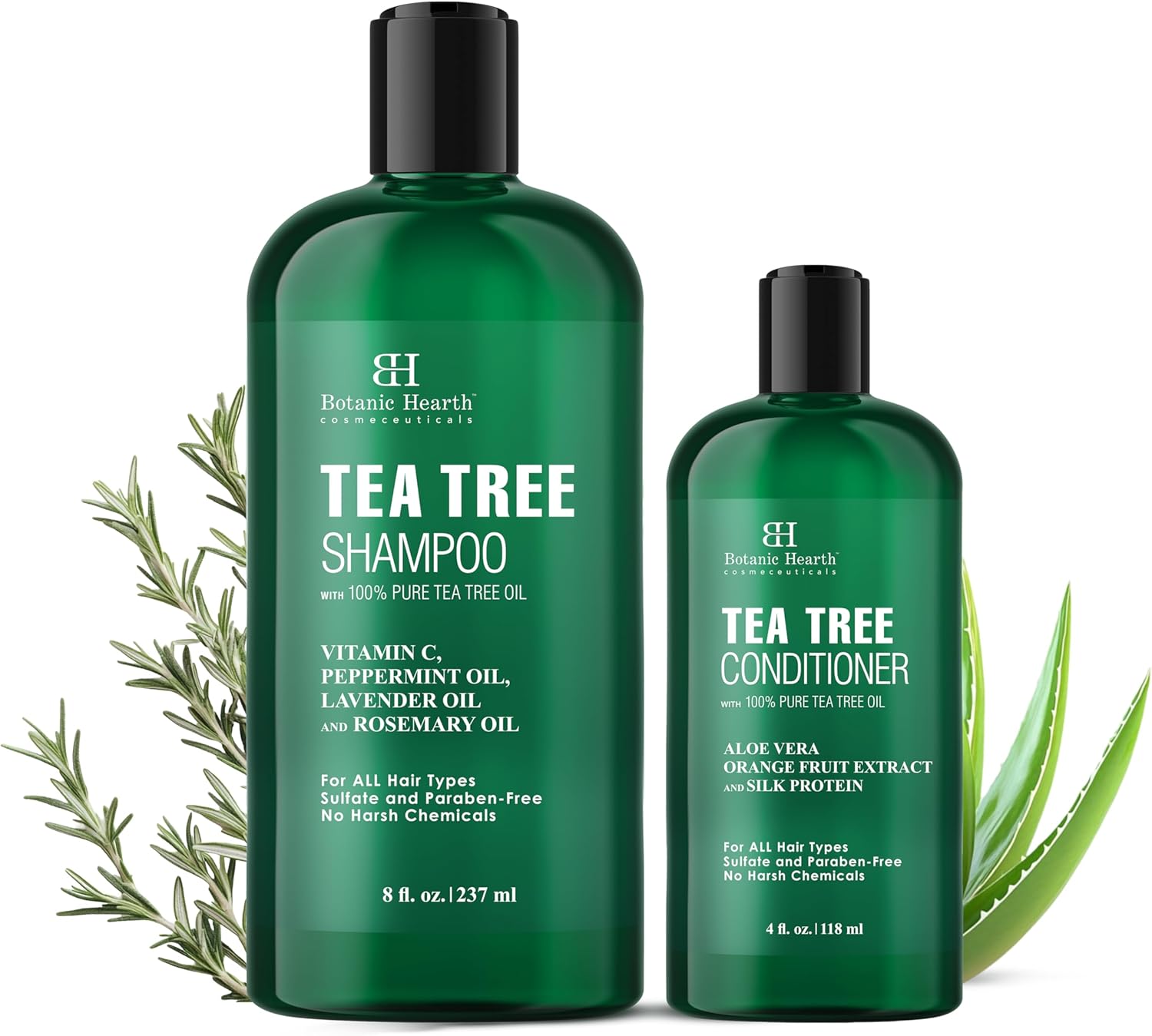 Botanic Hearth Tea Tree Shampoo 8Fl Oz And Conditioner 4 Fl Oz - With 100% Pure Tea Tree Oil, For Itchy And Dry Scalp, Sulfate/Paraben Free - For Men And Women