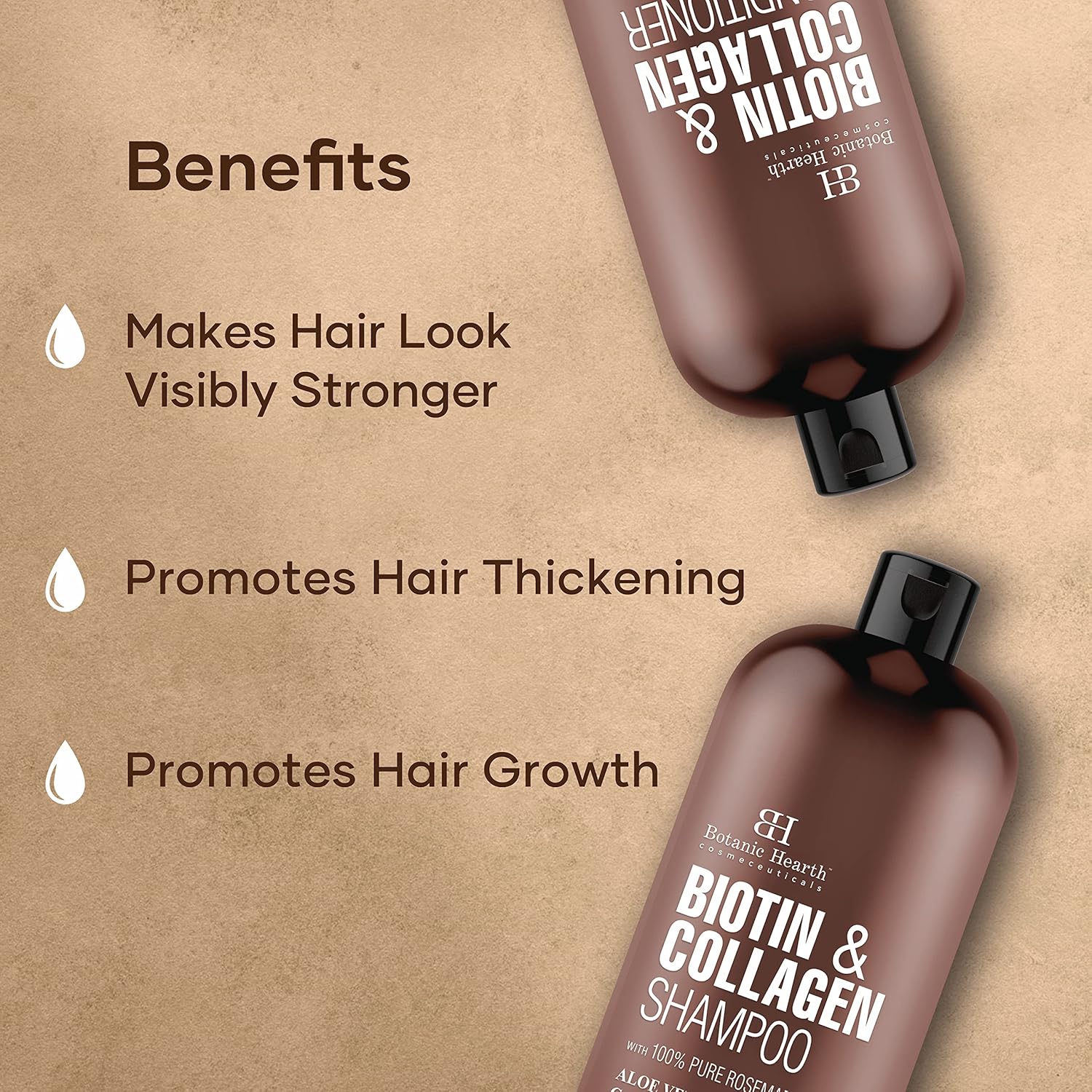 Botanic Hearth Vegan Collagen Biotin Shampoo And Conditioner Set - With Rosemary Oil For Hair Loss And Thinning Hair - Fights Hair Loss, Sulfate Free, For Men And Women, 16 Fl Oz Each