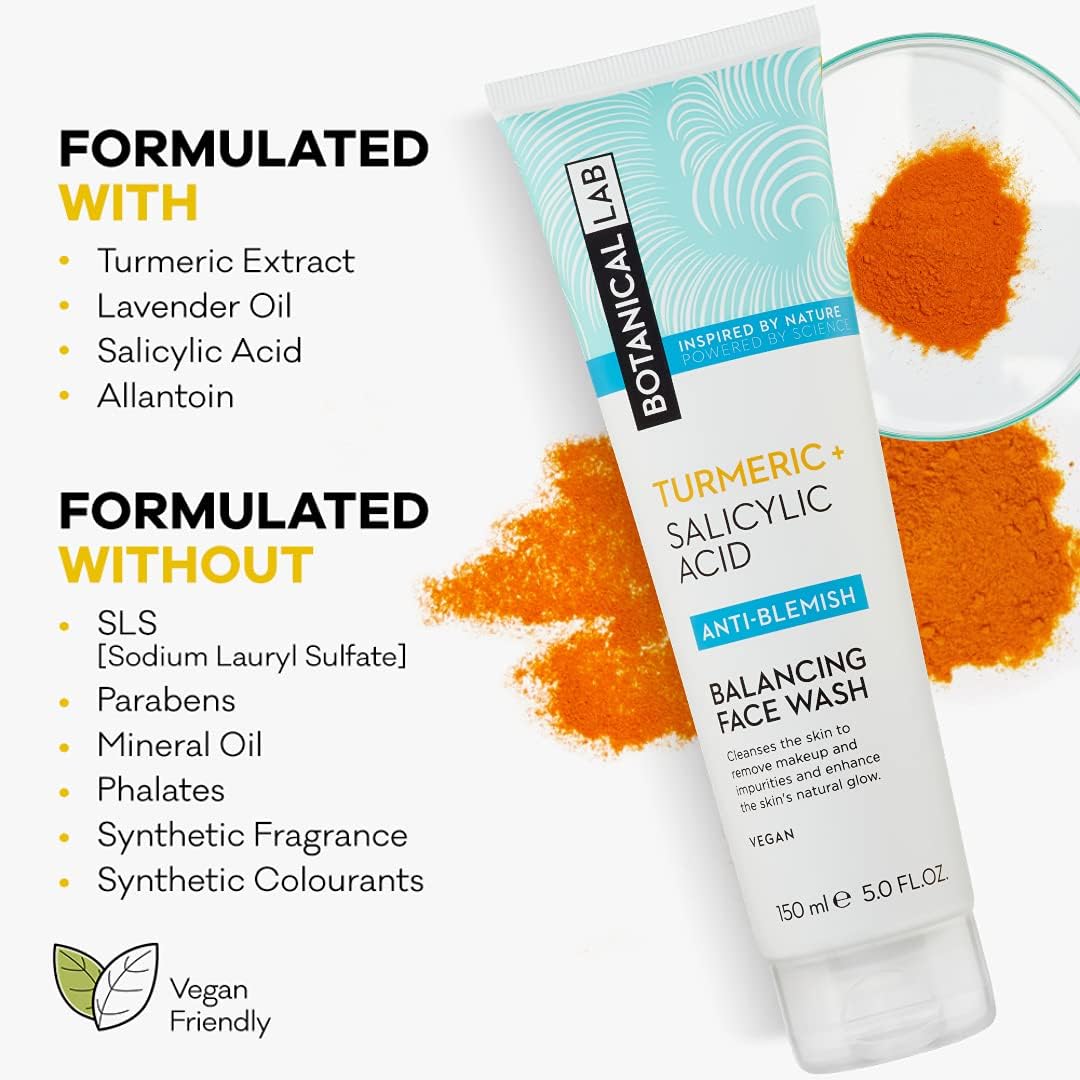 Botanical Lab Turmeric + Salicylic Acid Balancing Gel Face Cleanser For Combination, Oily And Blemish Prone Skin, Clear, 150 Ml