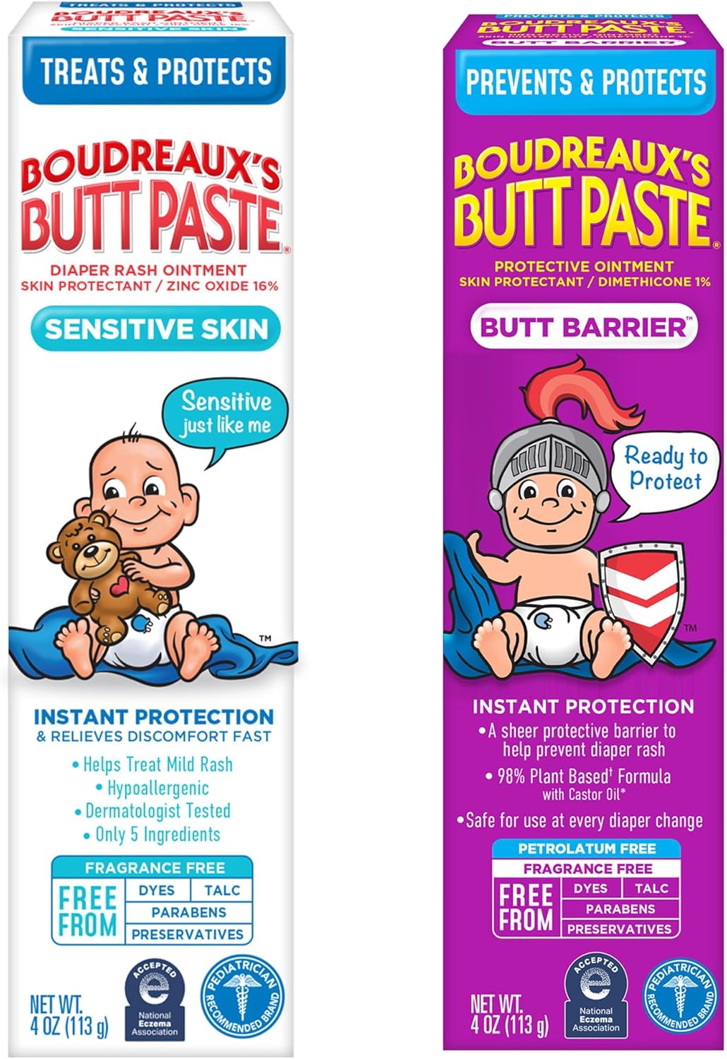Boudreaux'S Butt Paste 4Oz Butt Barrier Ointment And 4Oz Sensitive Skin Diaper Rash Ointment
