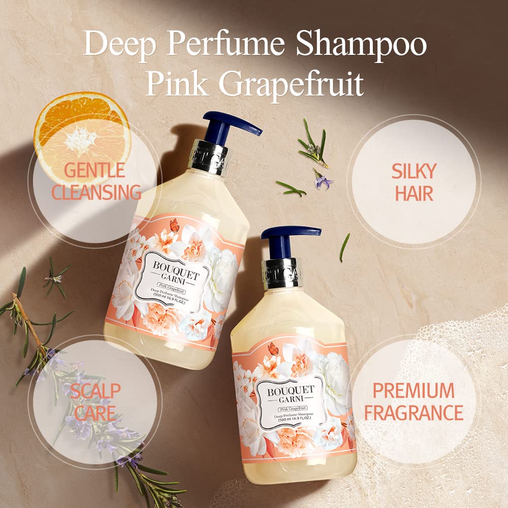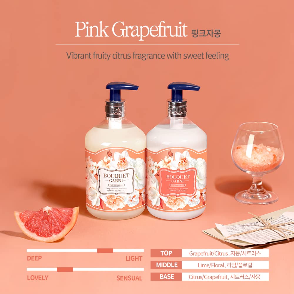 Bouquet Garni Shampoo Pink Grapefruit - Long Lasting Fragrance Dry Hair Moisturizing - Scalp Moisturizer And Cleansing With Natural Surfactant - Nutritious Amino, Protein, Natural Oil - 16.9 Fl Oz