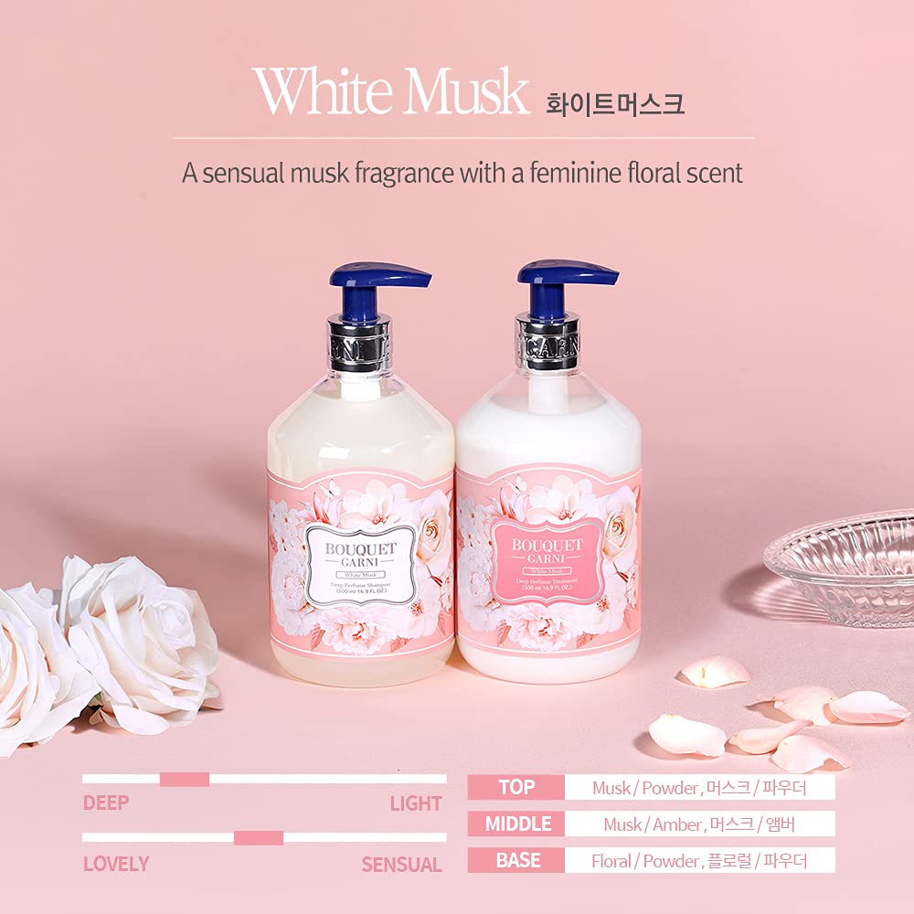 Bouquet Garni Shampoo White Musk - Long Lasting Fragrance Dry Hair Moisturizing Shampoo - Scalp Moisturizer And Cleansing With Natural Surfactant - Nutritious Amino, Protein, Natural Oil - 16.9 Fl. Oz