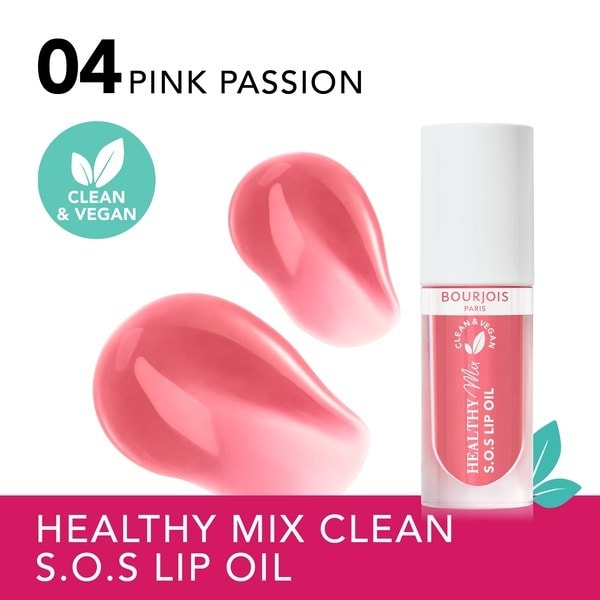 Product Information:Healthy Mix S.O.S Lip Oil: your lip survival essential. This lip-beautifying oil helps to hydrate lips with a luscious, radiant glow. It’s your lip life-saver, delivering hydration recovery and extra shine! Clean and vegan, this lip-loving oil is made with 94% natural origin ingredients. The caring formula is infused with a mix of nourishing avocado and raspberry oils, plus vegan collagen and antioxidant grape extract. And not forgetting Bourjois’ signature vitamins mix. Chapped and dry lips are restored, and lips are beautified after just 7-days’ use*. That’s S.O.S relief! This lightweight, non-sticky oil not only feels delicious but makes lips look juicy and shiny,Features:Hydrating, Lightweight, Non-Sticky, Clean & Vegan, Contains Vegan Collagen,Product Specification:INGREDIENTS: COCOGLYCERIDES, ETHYLCELLULOSE, PARFUM/FRAGRANCE, RUBUS IDAEUS (RASPBERRY) SEED OIL, ASCORBYL PALMITATE, PANTHENYL TRIACETATE, PERSEA GRATISSIMA (AVOCADO) OIL, POTASSIUM COCOYL HYDROLYZED COLLAGEN, TOCOPHERYL ACETATE, CAPRYLIC/CAPRIC TRIGLYCERIDE, PROPYL GALLATE, VITIS VINIFERA (GRAPE) FRUIT EXTRACT, DICALCIUM PHOSPHATE, [MAY CONTAIN/PEUT CONTENIR/+/-: RED 28 LAKE (CI 45410), IRON OXIDES (CI 77491, CI 77492, CI 77499), BLUE 1 LAKE (CI 42090), TITANIUM DIOXIDE (CI 77891), YELLOW 5 LAKE (CI 19140)],Product Uses:Apply to the lips