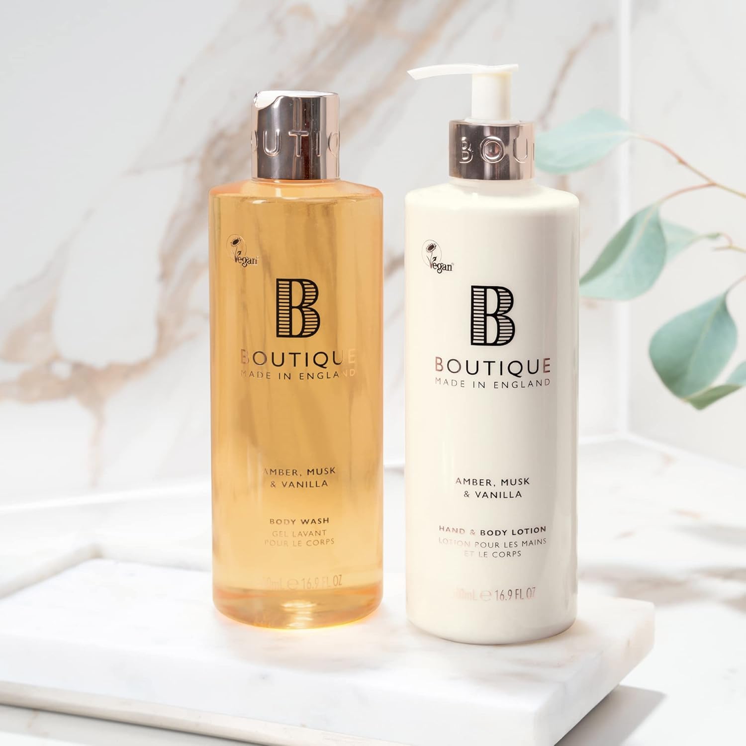 Boutique Amber, Musk & Vanilla Fragrance Refreshing Body Wash 500Ml - Relaxing Blend Of Essential Oils - Vegan And Cruelty Free, No Sls Or Parabens - Made In England
