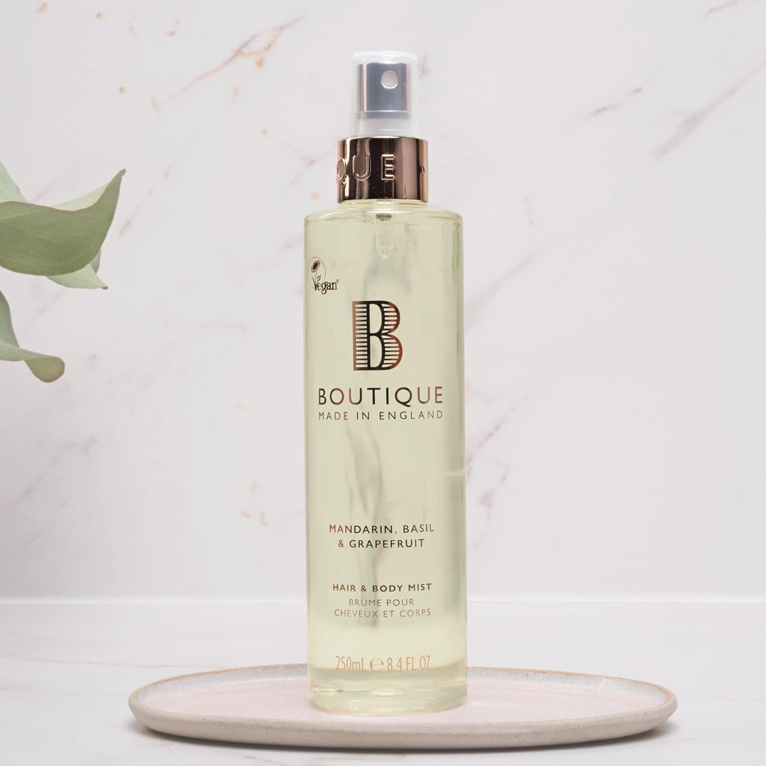 Boutique Body Spray 250Ml - Mandarin, Basil & Grapefruit Fragrance Womens Hair & Body Mist - Refreshing, Moisturising Spray With Essential Oils - Vegan - Made In England