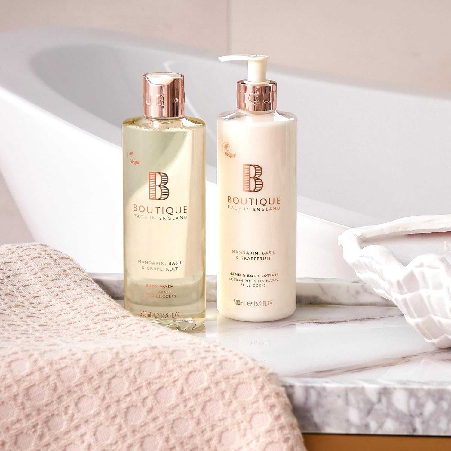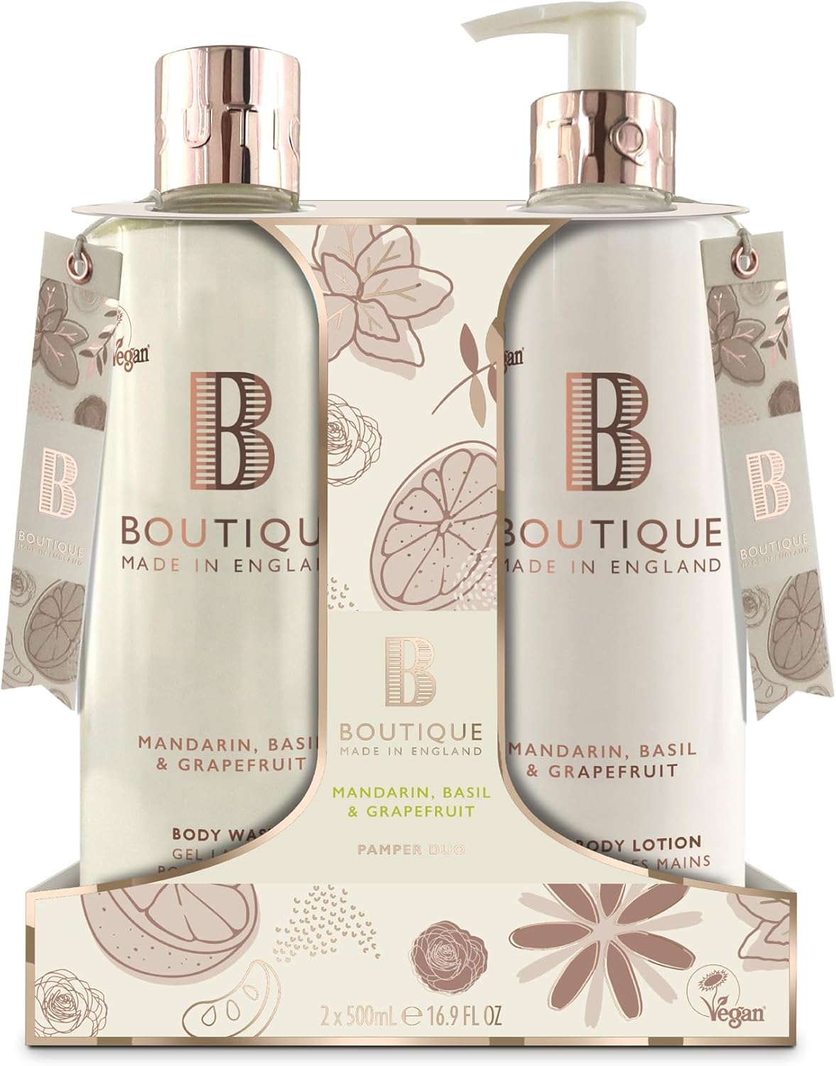Boutique Cherry Blossom & Peony Body Duo Set - 1 X Body Wash & 1 X Hand & Body Lotion 500Ml - Essential Oils - Vegan - Made In England
