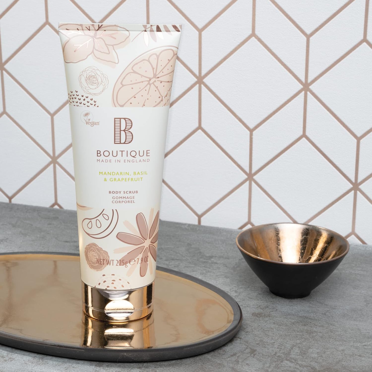 Boutique Neroli, Pear & Gingerlily Fragrance Body Scrub, 225Ml, Exfoliating Body Scrub, Refreshing - Essential Oils - Vegan And Cruelty Free, No Sls Or Parabens - Made In England