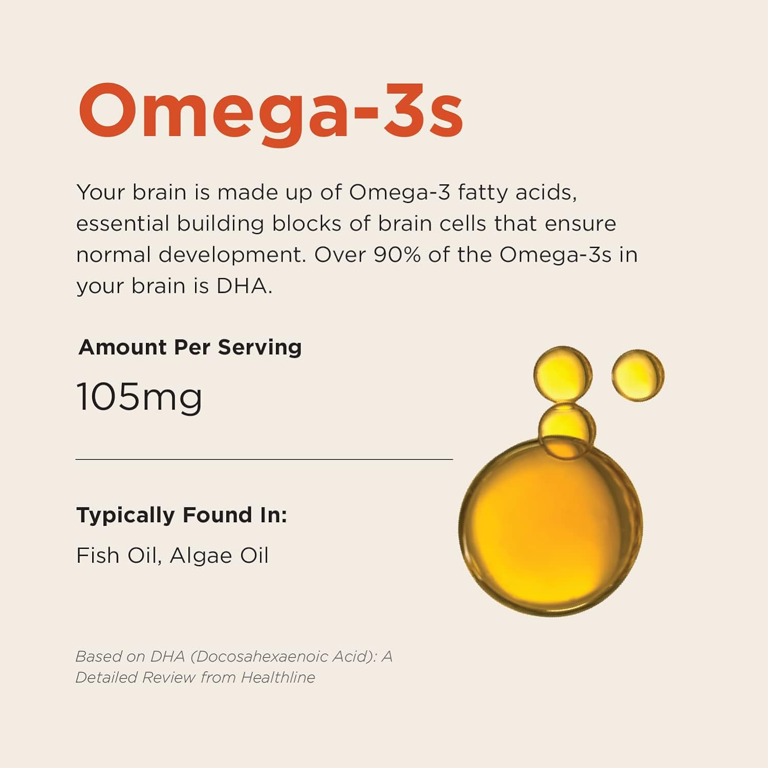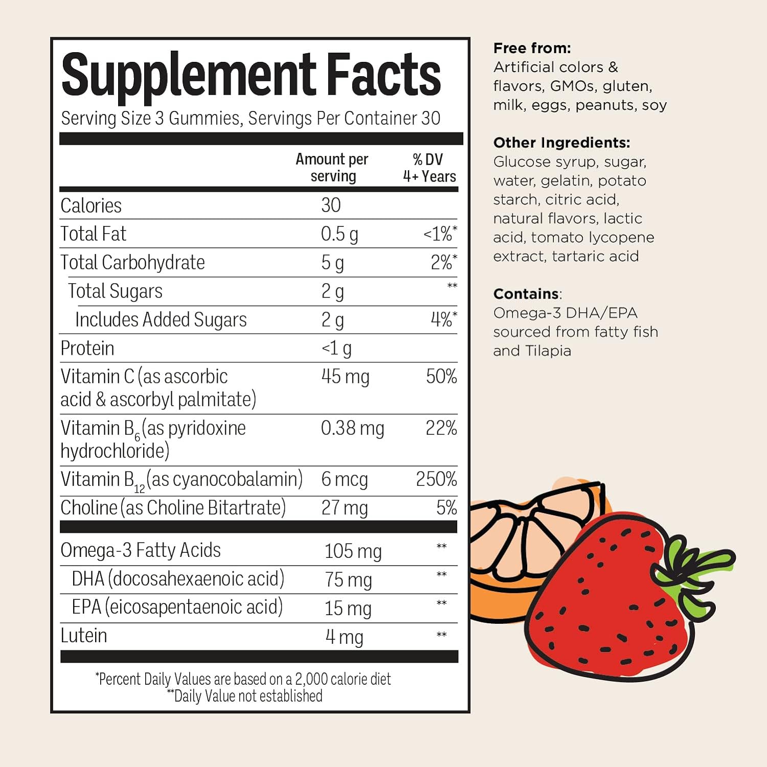 Brainiac Kids Daily BrainPack Gummies To Support Brain Health: Contains 90 delicious citrus berry flavor gummies with Omega 3 DHA EPA DPA, Choline, Lutein, B6 & B1310Contains Six Critical Brain Health Nutrients For Kids: The only brain health vitamin that combines 6 critical nutrients of Omega-3s (DHA & EPA), Choline, Lutein, B6 & B12 to support attention and memory10Brainiac's Commitment To Brain Health: We believe in long-term brain health and formulate our vitamins with only nutrients found in the brain and body instead of using caffeine or herbal supplements10The Power of Lutein: Lutein helps protect the developing brain and supports the health of your child's eyes including helping to filter blue light associated with electronic device screens10Try Brainiac Foods Full Line of Brain Boosting Products: We offer delicious, brain nutrient snacks including Applesauce Squeezers, Brain Butter Packs, Toddler Fruit & Veggie Pouches & Vitamin Gummies10