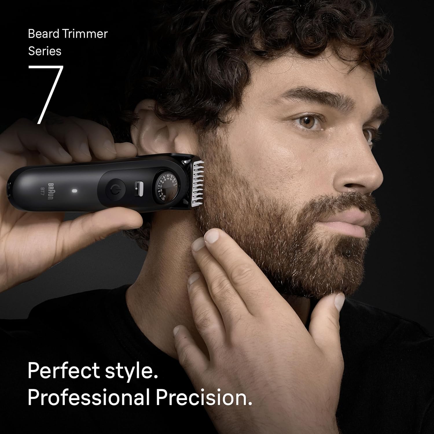 Braun Beard Trimmer Series 7, +12 Barbering Tools, Lifetime Sharp Problade, Up To 120 Min Runtime, 40 Lengths, Waterproof, Precisionwheel & Lock, Bt7545, Grey