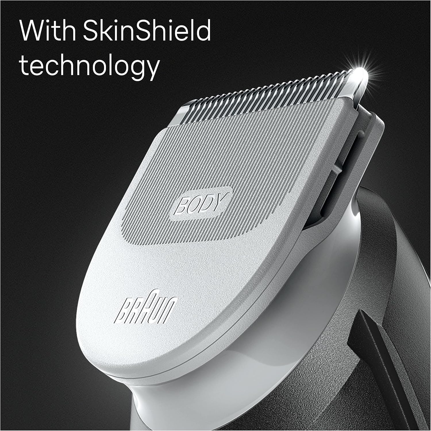 Braun Body Groomer Series 5 5370, For Men, Incl. 2 Combs 3Mm-11Mm Lengths, Skinshield Technology Gentle Use And Clean Shave Attachment, Waterproof, Cordless With 100-Min Run Time, Noir, 1.0 Count