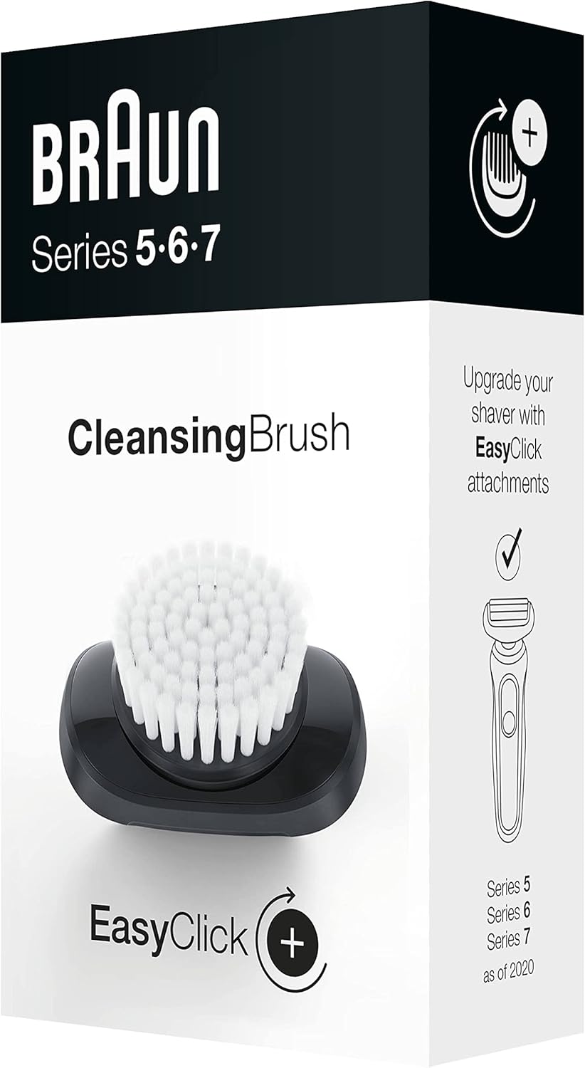 Braun Easyclick Cleansing Brush Attachment For New Generation Series 5, 6 And 7 Electric Shaver, Cleans, Exfoliates And Refines Your Skin, White