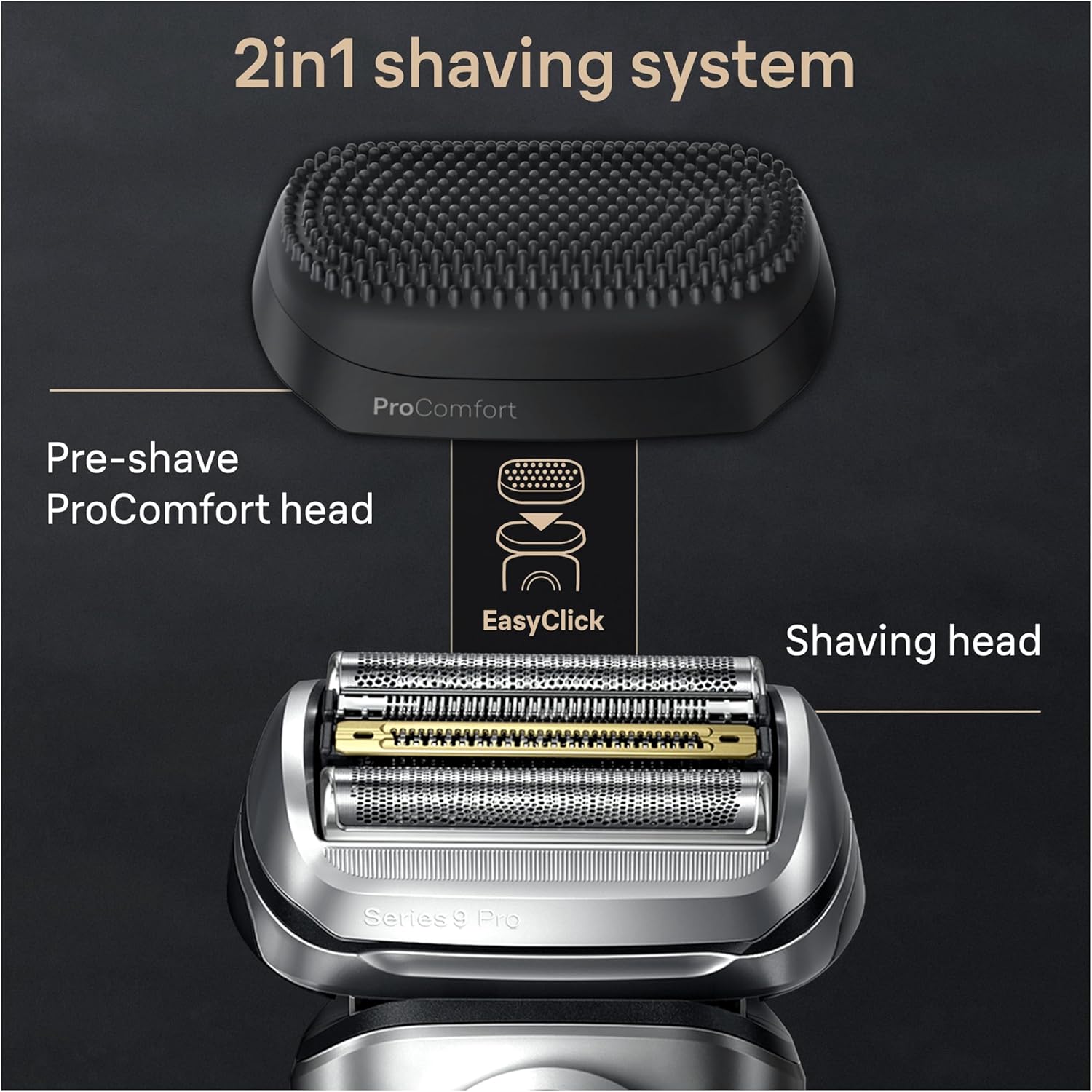 Braun Series 9 Pro+ Electric Shaver For Men, 5 Pro Shave Elements & Shave-Preparing Procomfort Head, 2In1 System, Smartcare Center, Wet & Dry Electric Razor With 60Min Runtime, 9597Cc, Silver