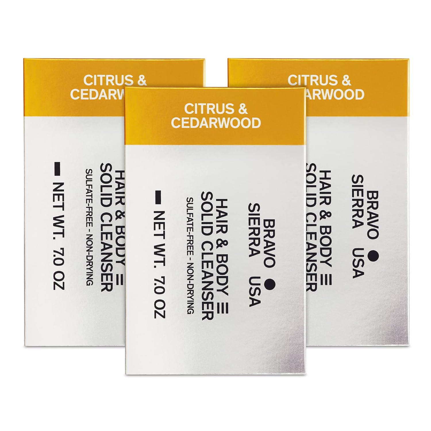 About this item The Anti-Soap Bar: Bravo Sierra’s Hair & Body Solid Cleanser is an all-in-one body bar and solid shampoo. It’s formulated without soap, sulfates, or drying agents and works into a rich lather. One bar will last 30-40 showers. Sandalwood & Fig has an energizing and vibrant scent with notes of fig, tangerine, amber, and sandalwood. Coconut-Derived Formula: Get an all-around clean without the harsh chemicals. This bar is enriched with coconut, shea butter, and oat kernel flour for soft, moisturized skin and conditioned hair. Perfect for Packing Light: Developed with U.S. Military service members, the Hair & Body Solid Cleanser is a great option for an efficient shower or when you need to pack light. Cradle to Cradle Bronze Certified: Does not contain parabens, phthalates, phenoxyethanol, silicones, sulfates, or PEGS. Vegan & Cruelty-Free. 99% biodegradable & carbon neutral manufacturing. Proud supporter of the Navy Seal Foundation. Made in the USA. › See more product details,The Anti-Soap Bar: Bravo Sierra’s Hair & Body Solid Cleanser is an all-in-one body bar and solid shampoo. It’s formulated without soap, sulfates, or drying agents and works into a rich lather. One bar will last 30-40 showers. Sandalwood & Fig has an energizing and vibrant scent with notes of fig, tangerine, amber, and sandalwood,Coconut-Derived Formula: Get an all-around clean without the harsh chemicals. This bar is enriched with coconut, shea butter, and oat kernel flour for soft, moisturized skin and conditioned hair,Perfect for Packing Light: Developed with U.S. Military service members, the Hair & Body Solid Cleanser is a great option for an efficient shower or when you need to pack light,Cradle to Cradle Bronze Certified: Does not contain parabens, phthalates, phenoxyethanol, silicones, sulfates, or PEGS. Vegan & Cruelty-Free. 99% biodegradable & carbon neutral manufacturing. Proud supporter of the Navy Seal Foundation. Made in the USA