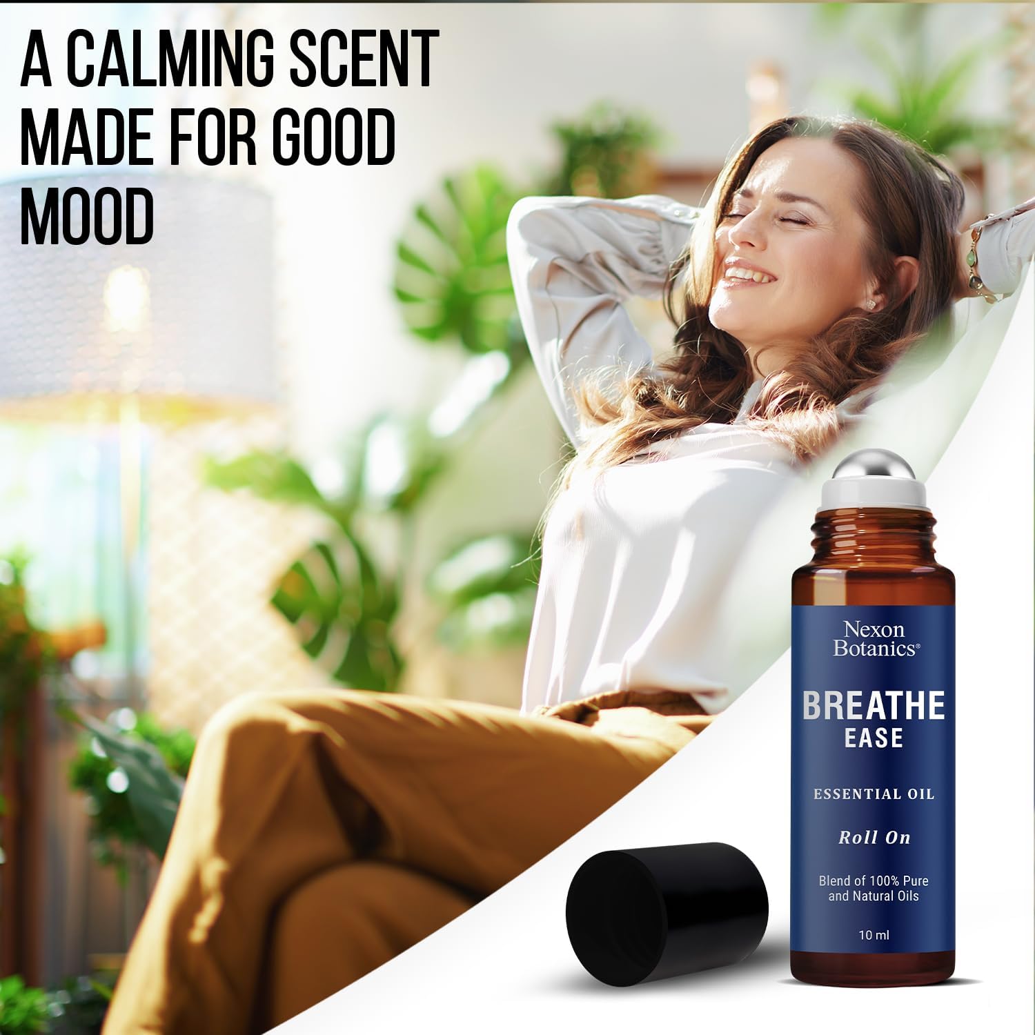 Breathe Ease Essential Oil Roll-On Blend 10 Ml - Pure Eucalyptus, Peppermint & Rosemary Oils Roller For Clear Breathing & Respiratory Support - Nexon Botanics