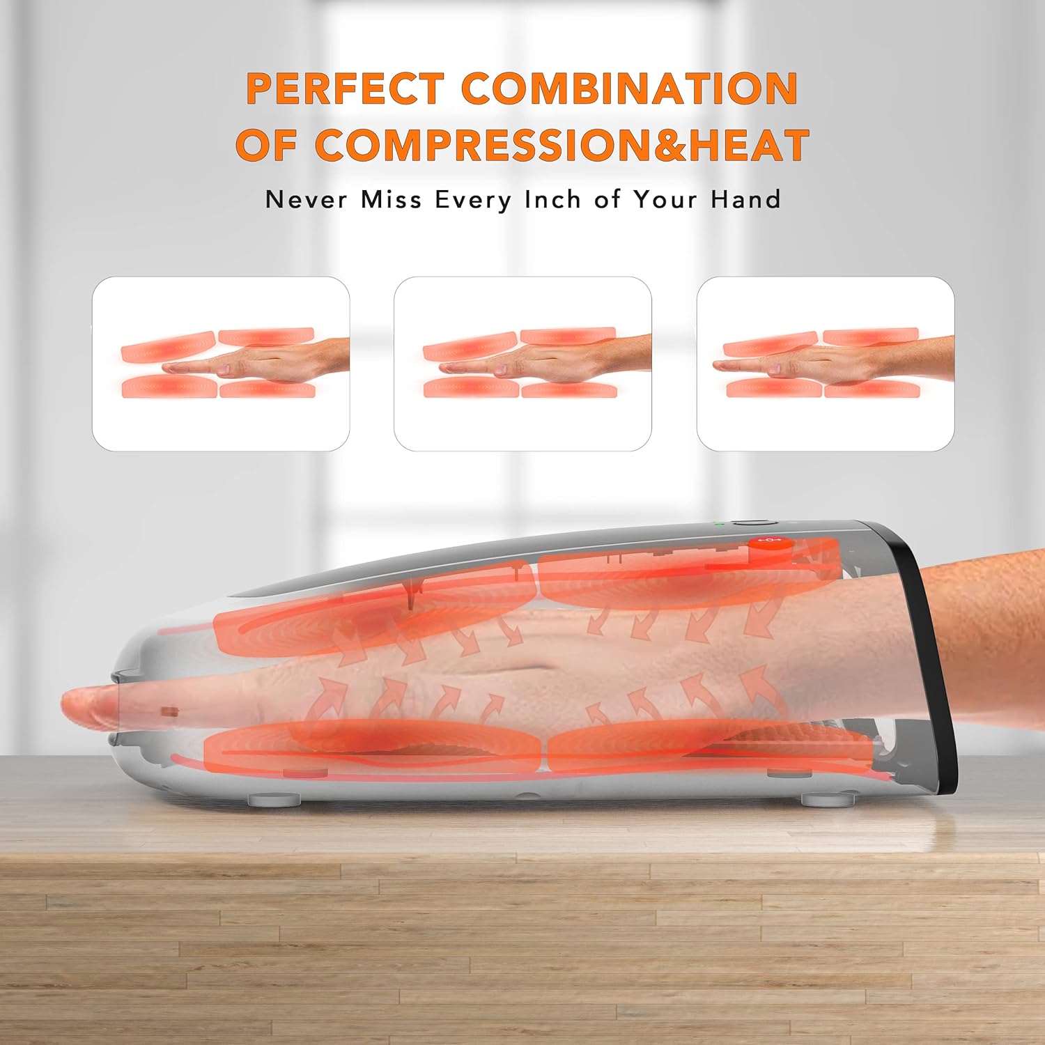 4 >Heating: Providing comforting heat to the hand 98? or 107? (35?/42?) to soothe the muscles, relieve hand fatigue, discomfort, cold fingers