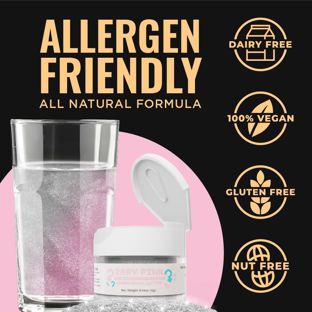 ?? A swirl of our edible drink glitter infuses color changing glitter and color into any beverage. Open the flip top, pour in Brew Glitter, stir, and surprice your guests with the gender!