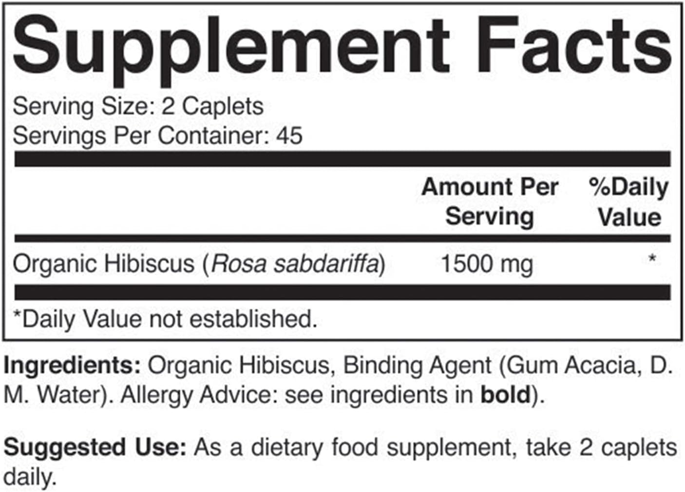 1,500mg of Organic Hibiscus Per Serving, 750mg Per Tablet