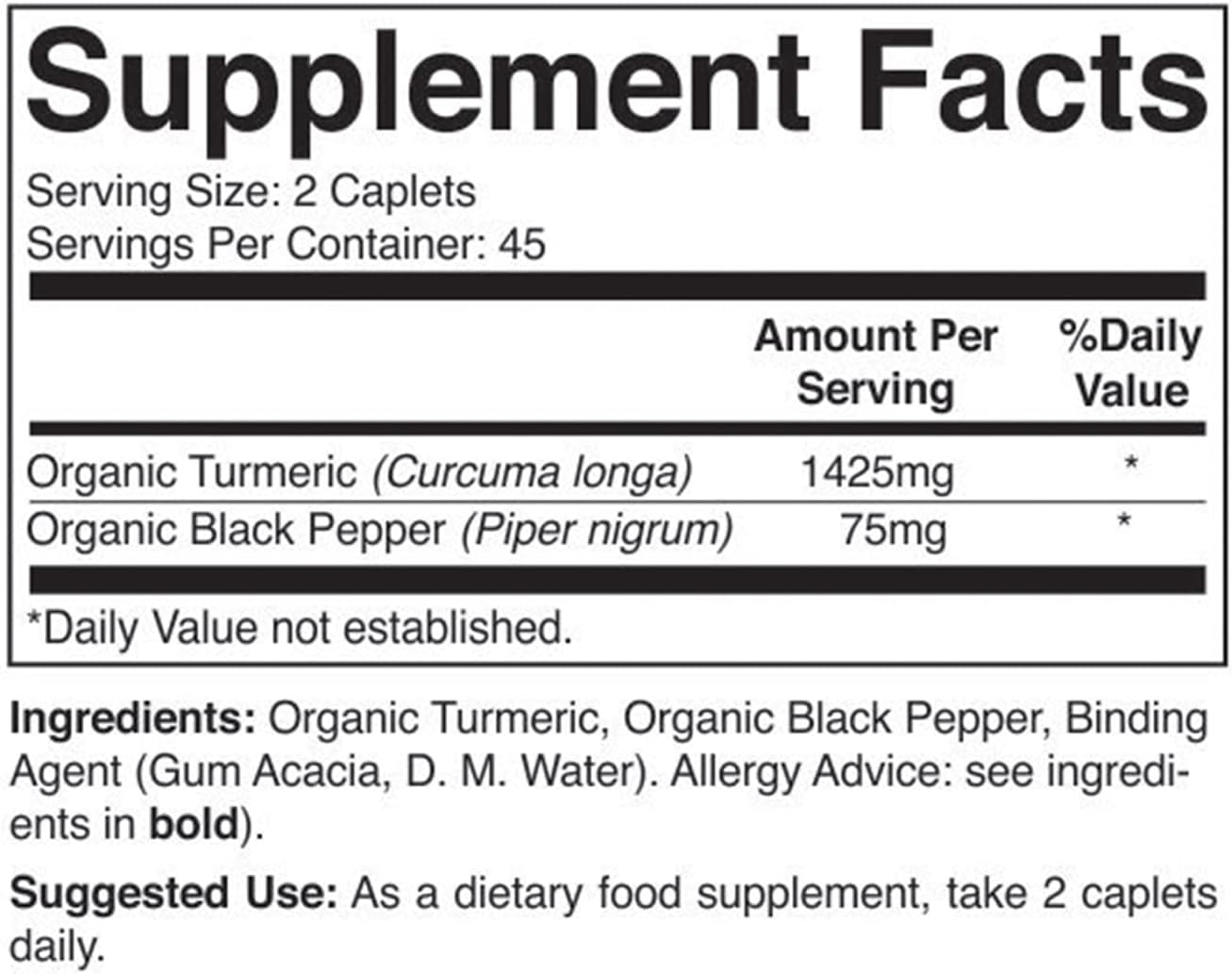 1,500mg of Organic Turmeric with black pepper Per Serving, 750mg Per Tablet
