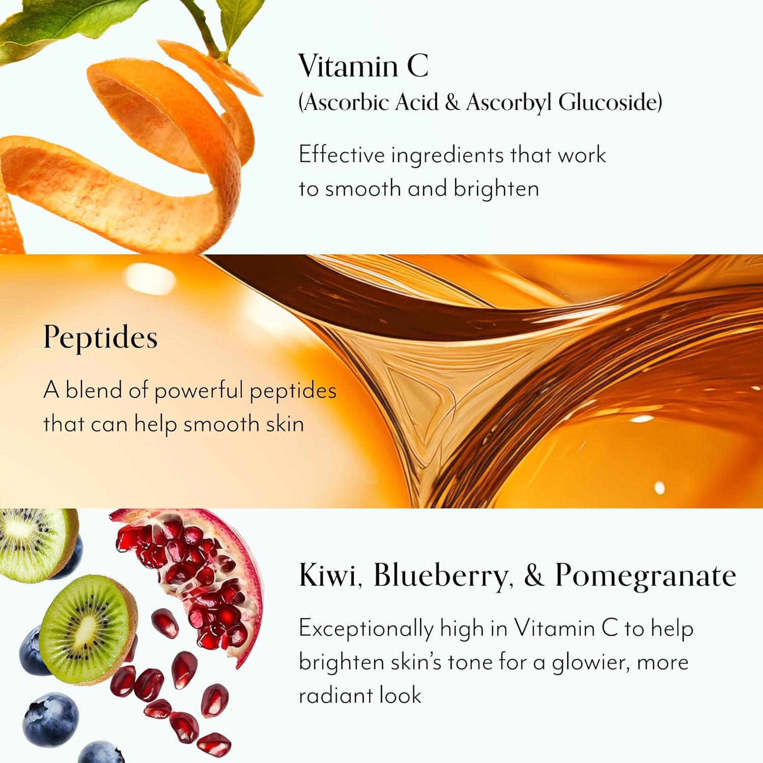 About this item GET GLOWING on the go with these convenient pre-soaked Vitamin C toner pads that deliver brighter, radiant, more glowing skin effortlessly. PERFECT FOR PRIMING and prepping your skin for the rest of your glow routine, this brightening toner works to promote a radiant complexion while defending against free radicals and minimizing the look of dark spots over time. ENRICHED with two types of Vitamin C, Ascorbic Acid & Ascorbyl Glucoside that work towards smoother and brighter skin, plus skin-smoothing peptide and a blend of antioxidant-rich fruit extracts to enhance your natural radiance GET THE PERFECT DOSE every time thanks to these pre-soaked pads. Each generously sized pad even doubles as a leave-on sheet mask for targeted brightening on areas of discoloration too. GENTLY WIPE over clean dry skin day or night, avoiding the eye area. No need to rinse! Use daily, or as often as you need. For more targeted, concentrated application, press and leave a pad on skin as a sheet mask for 10 minutes before removing. See more product details,GET GLOWING on the go with these convenient pre-soaked Vitamin C toner pads that deliver brighter, radiant, more glowing skin effortlessly,PERFECT FOR PRIMING and prepping your skin for the rest of your glow routine, this brightening toner works to promote a radiant complexion while defending against free radicals and minimizing the look of dark spots over time,ENRICHED with two types of Vitamin C, Ascorbic Acid & Ascorbyl Glucoside that work towards smoother and brighter skin, plus skin-smoothing peptide and a blend of antioxidant-rich fruit extracts to enhance your natural radiance,GET THE PERFECT DOSE every time thanks to these pre-soaked pads. Each generously sized pad even doubles as a leave-on sheet mask for targeted brightening on areas of discoloration too,GENTLY WIPE over clean dry skin day or night, avoiding the eye area. No need to rinse! Use daily, or as often as you need. For more targeted, concentrated application, press and leave a pad on skin as a sheet mask for 10 minutes before removing
