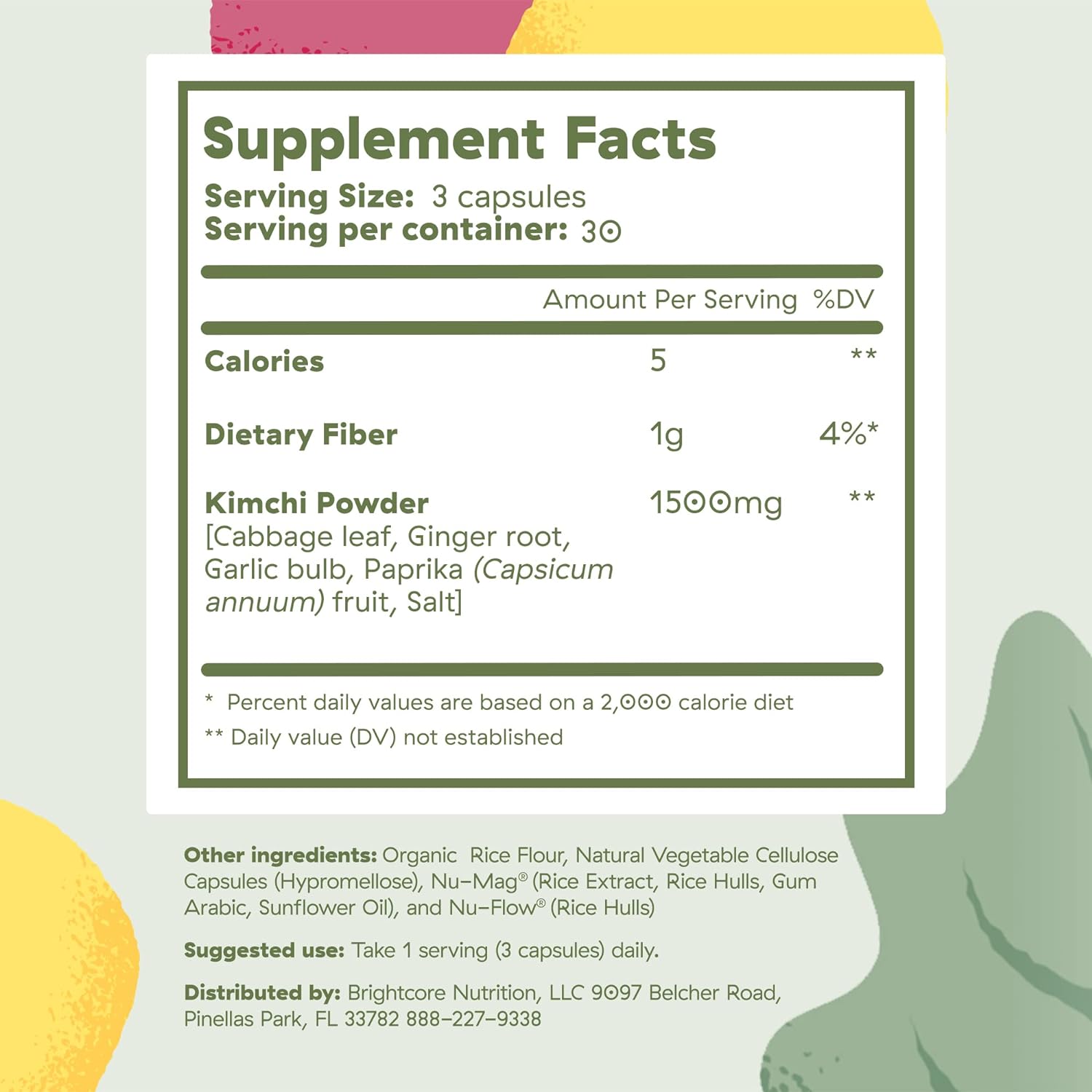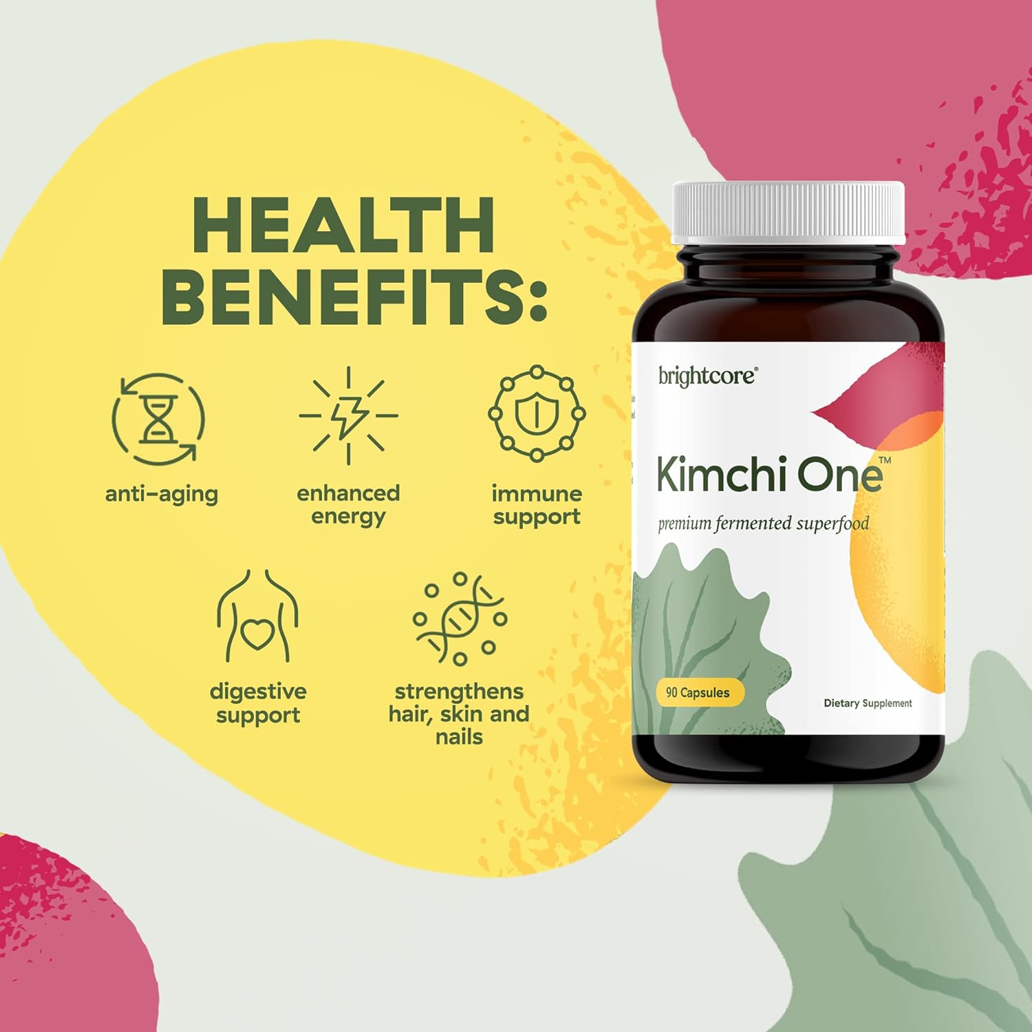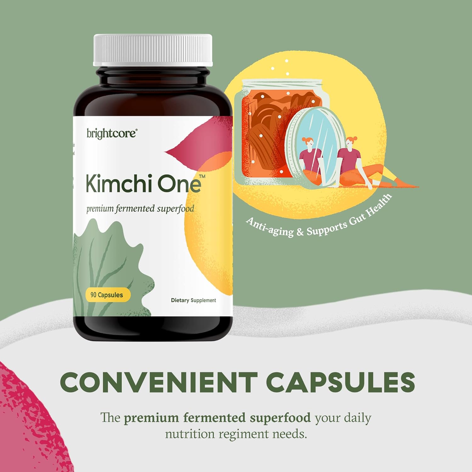 Brightcore Nutrition - Kimchi One, Kimchi Powder Capsules, Probiotics, Enzymes, & Antioxidant Supplement, Premium Gut Health Superfood For Overall Well Being, Gluten-Free, 90 Vegan Capsules