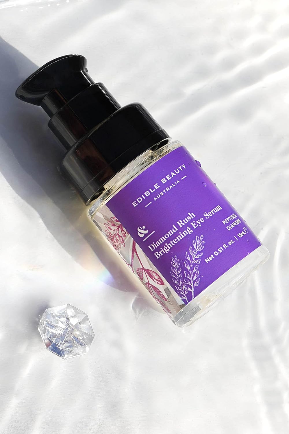 About this item Infused with Diamonds - This diamond infused eye serum assists with brightening the under-eye area, whilst promoting the production of collagen, helping to revitalize the appearance of fatigued eyes. It gently exfoliates the skin, promoting skin cell renewal and allowing actives in the serum to penetrate the dermis more deeply and effectively. Reduce Puffiness - This Hydrating and Brightening serum contains superior bio-actives to reduce puffiness and dark circles along with Peptides to improve skin texture and visibly reduce fine lines and wrinkles around the eye within 7 days. Restores Moisture - Hyaluronic Acid acts to improve skin pliability. It helps to retain moisture deep into the skin. The natural acid also fortifies the skin's natural lipid barriers to visibly revitalize the eye area. Our Natural Pledge - Our edible beauty promise to you: if you wouldn't put it in your mouth, we won't put it in our products. Our products are manufactured with Organic and Wildcrafted ingredients that are 100% Vegan and Cruelty Free. Environment Friendly - Our glass packaging made from recyclable Miron glass made in the Netherlands ensures our product purity is maintained with no harmful BPA, BPS or other endocrine disrupting chemicals leaching into our skincare formulations. See more product details,Infused with Diamonds - This diamond infused eye serum assists with brightening the under-eye area, whilst promoting the production of collagen, helping to revitalize the appearance of fatigued eyes. It gently exfoliates the skin, promoting skin cell renewal and allowing actives in the serum to penetrate the dermis more deeply and effectively,Reduce Puffiness - This Hydrating and Brightening serum contains superior bio-actives to reduce puffiness and dark circles along with Peptides to improve skin texture and visibly reduce fine lines and wrinkles around the eye within 7 days,Restores Moisture - Hyaluronic Acid acts to improve skin pliability. It helps to retain moisture deep into the skin. The natural acid also fortifies the skin's natural lipid barriers to visibly revitalize the eye area,Our Natural Pledge - Our edible beauty promise to you: if you wouldn't put it in your mouth, we won't put it in our products. Our products are manufactured with Organic and Wildcrafted ingredients that are 100% Vegan and Cruelty Free,Environment Friendly - Our glass packaging made from recyclable Miron glass made in the Netherlands ensures our product purity is maintained with no harmful BPA, BPS or other endocrine disrupting chemicals leaching into our skincare formulations