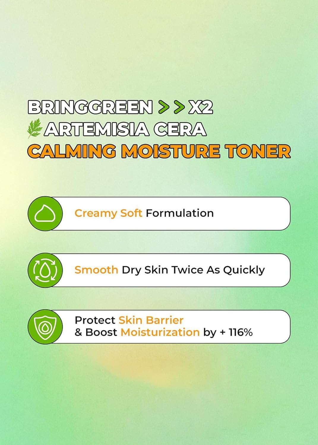 Bring Green Artemisia Cera Calming Moisture Toner | Daily Skincare Routine For Redness Relief, Super Calming Facial Toner To Relieve Sensitive, Irritated Skin 8.45 Fl. Oz., 250Ml