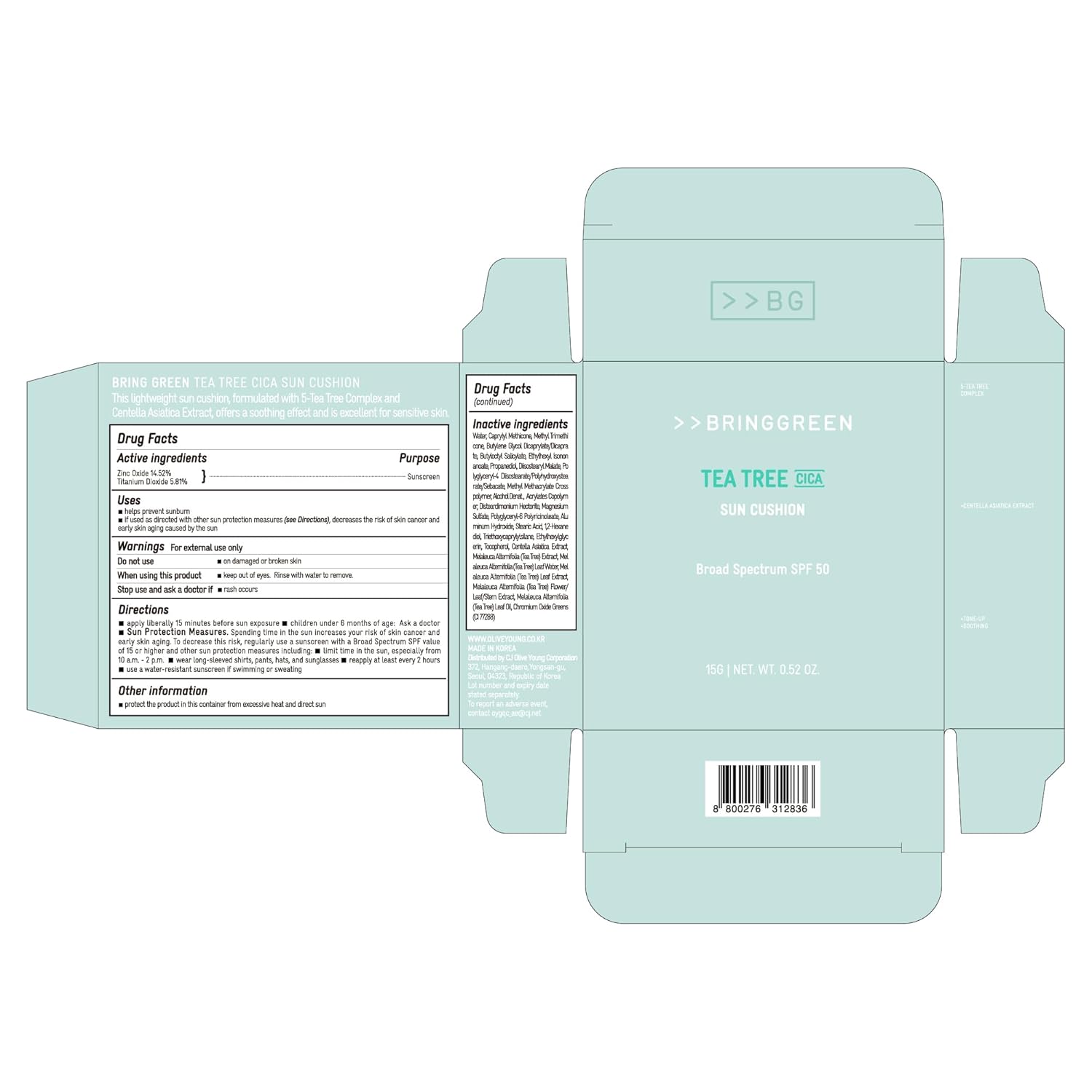 Bring Green Tea Tree Cica Facial Sun Cushion Spf 50+ Pa++++ | Korean Mineral Sunscreen For Face | Non-Nano, Reef-Safe, Redness Correcting With Zinc Oxide | Travel Size Sun Protection