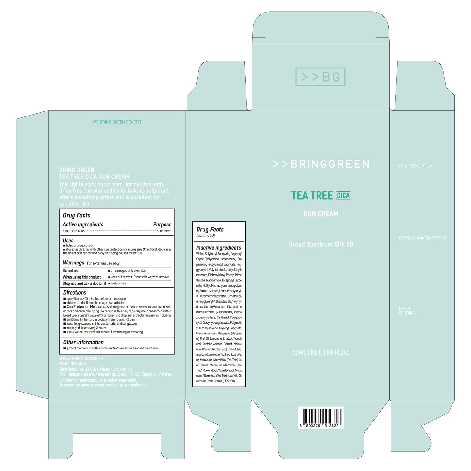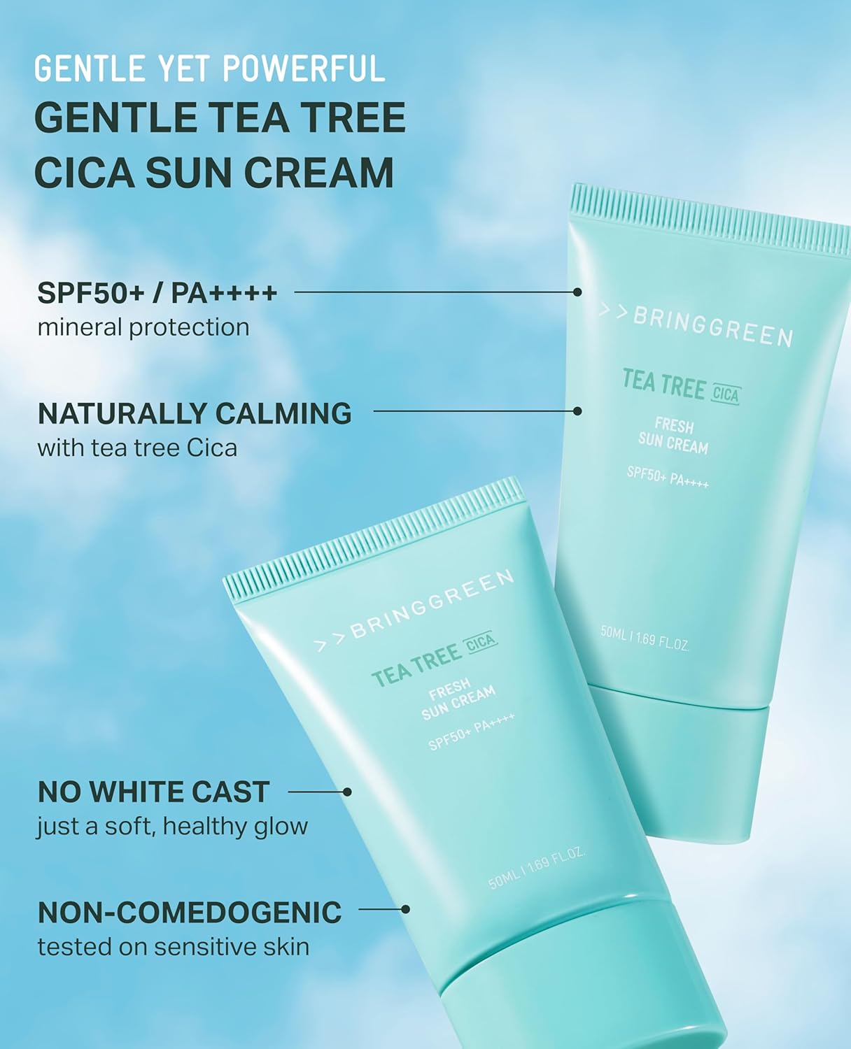 Bring Green Tea Tree Cica Mineral Sunscreen Spf 50+ Pa++++ | Non-Nano Zinc Oxide Face Sun Lotion, Reef Safe Korean Sunscreen For Sensitive Skin, Oil-Free, 1.69 Fl. Oz