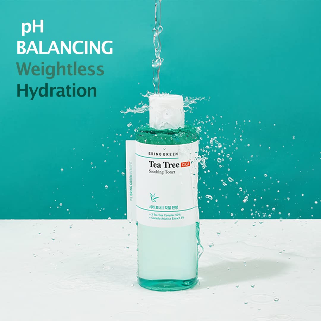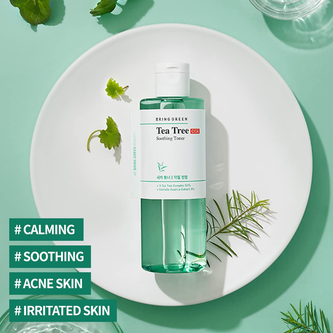 BRING GREEN Tea Tree CICA Soothing Toner Redness Relief for Face, Skin Balancing, AHA, Exfoliating Toner for Oily Skin, Korean Acne Treatment Skin Care, Hydrating, Calming for Dry Sensitive Skin
