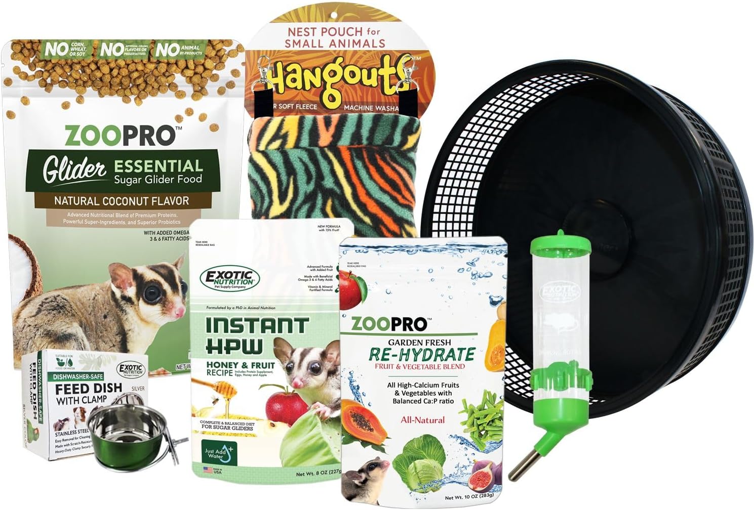 Brisbane Cage & Starter Package For Sugar Gliders - Includes Durable Cage, Healthy Food Variety, Exercise Wheel, Food Dishes, Water Bottle & Nest Pouch