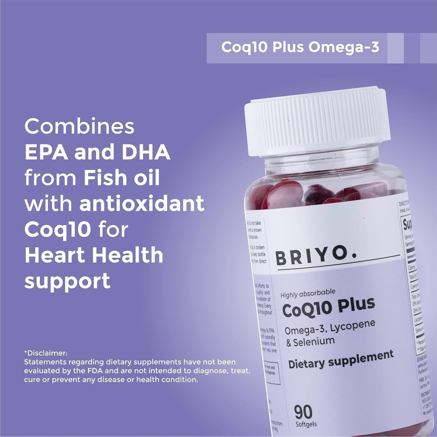 Briyo Highly Absorbable Coq10 100 Mg Plus Omega-3 With Natural Form Of Lycopene And Selenium, Heart Health Supplement (90 Softgels)