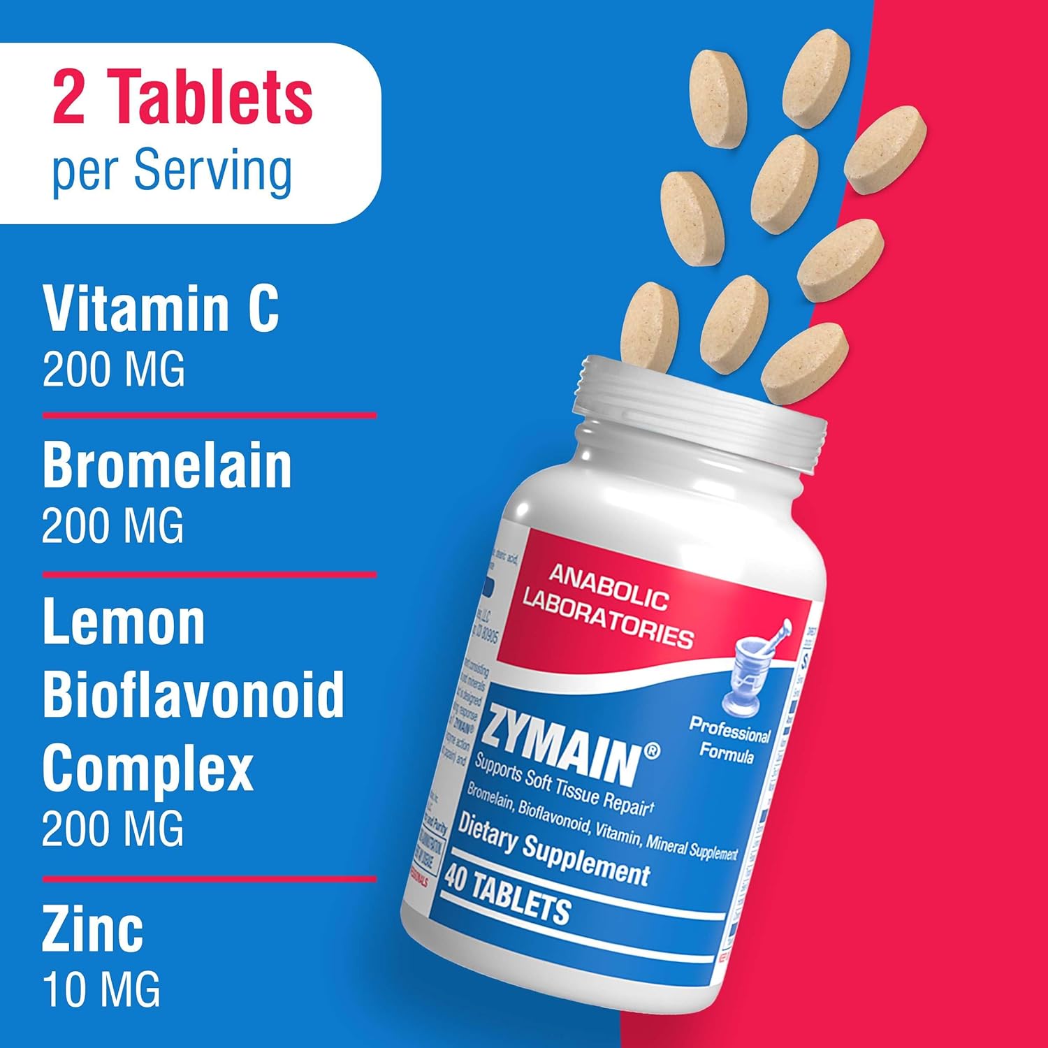 Bromelain Supplement For Soft Tissue Injuries - 90 Tablets - Vitamin C, Zinc, Citrus Bioflavonoids - Soft Tissue Support For Acute Injury Recovery - Zymain Proteolytic Enzymes, Minerals, Vitamins