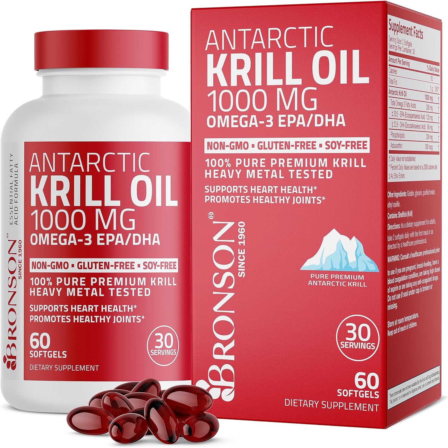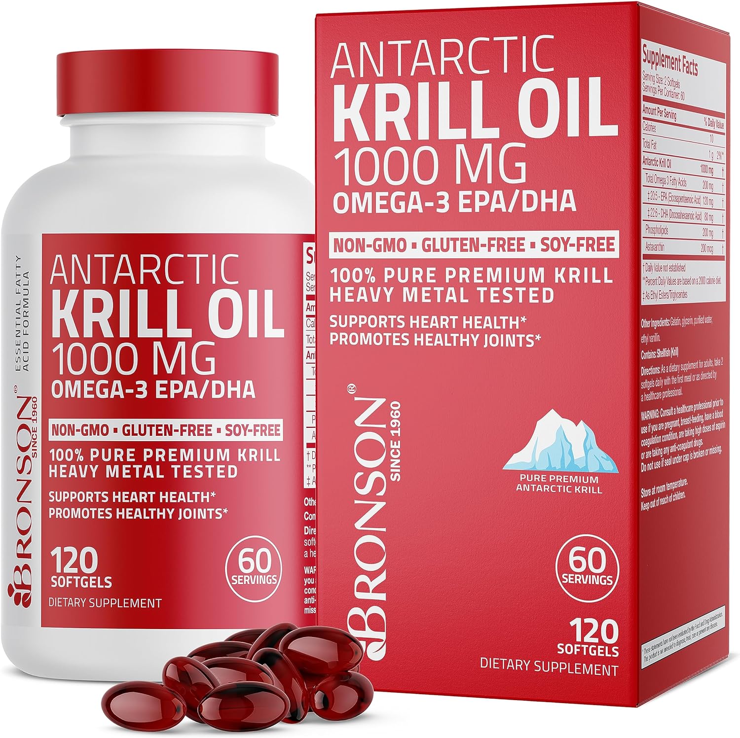 DESCRIPTION : Bronson Antarctic Krill Oil 1000 mg with Omega-3s EPA, DHA, Astaxanthin and Phospholipids 120 Softgels120 Count (Pack of 1)